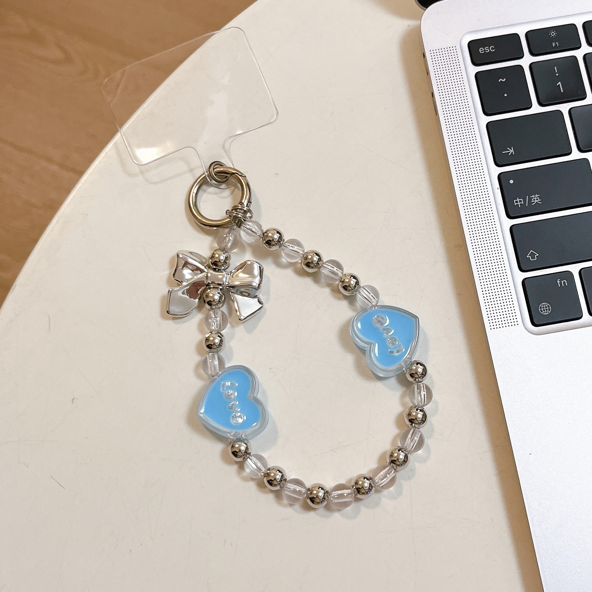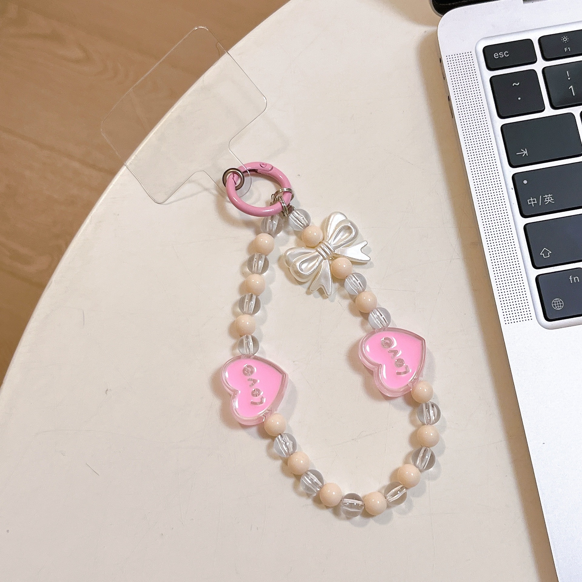k877 short bracelet transparent bead + two love pink love heart bow tie