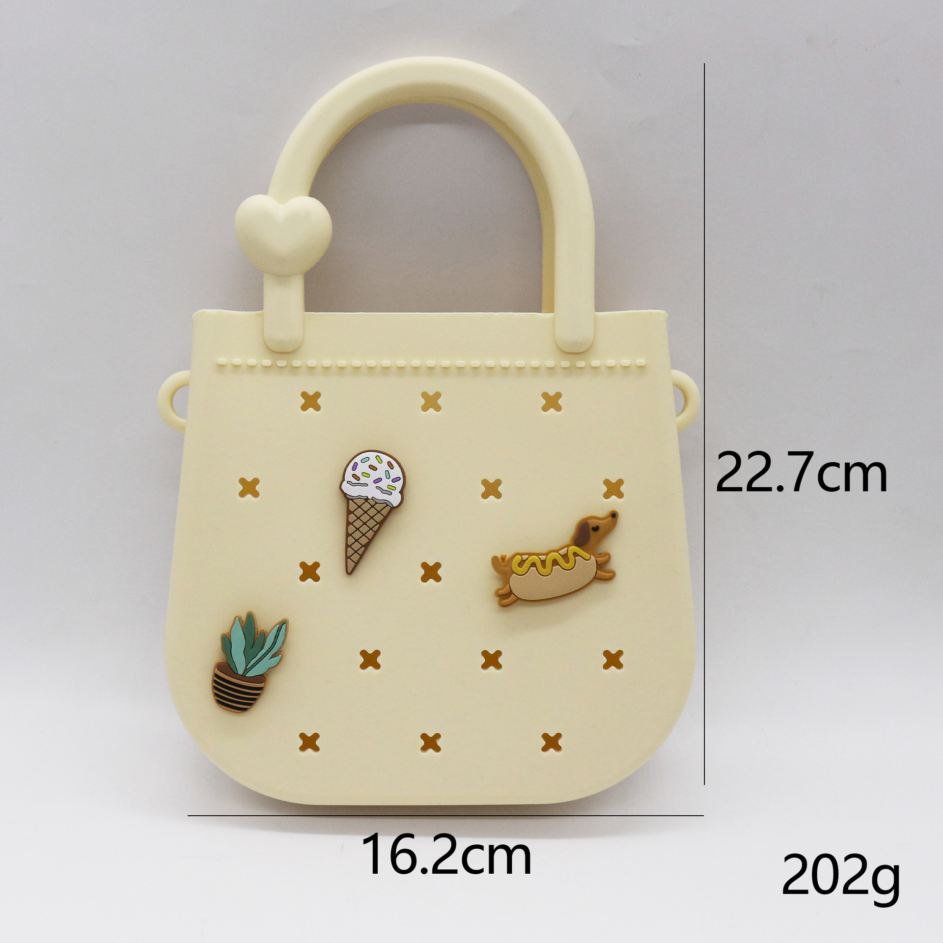 yellow heart shaped hole bag