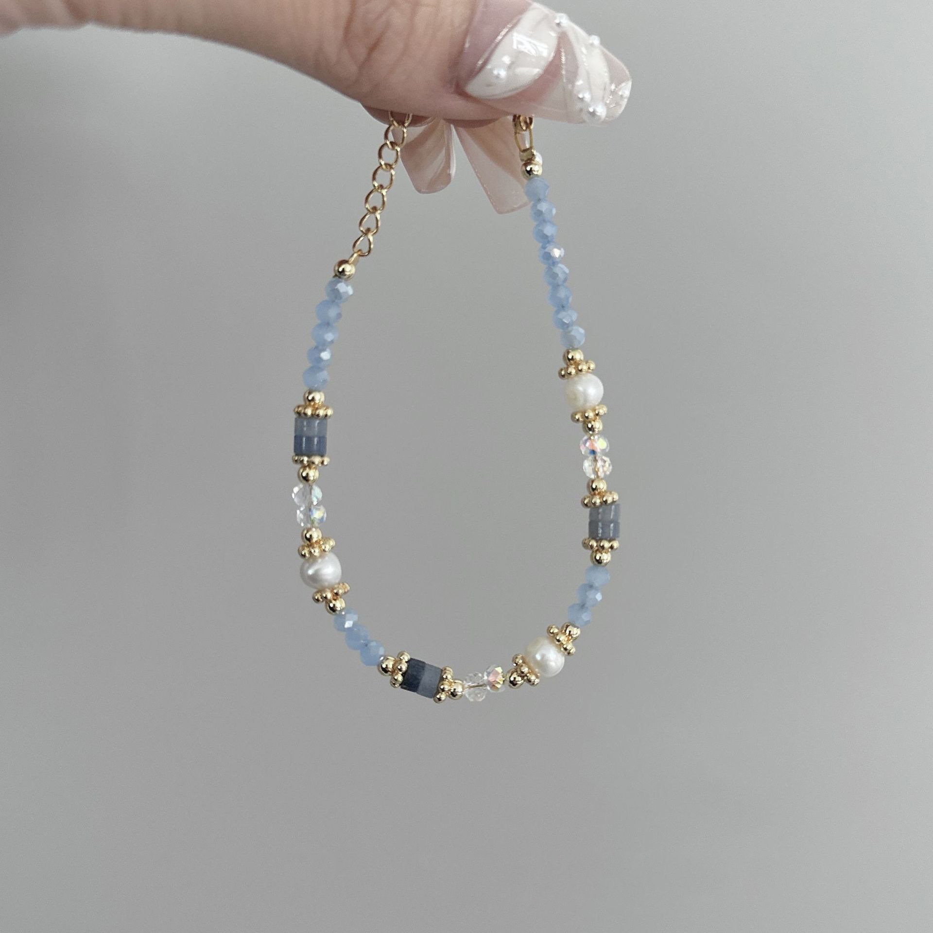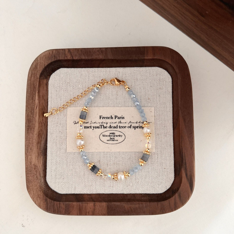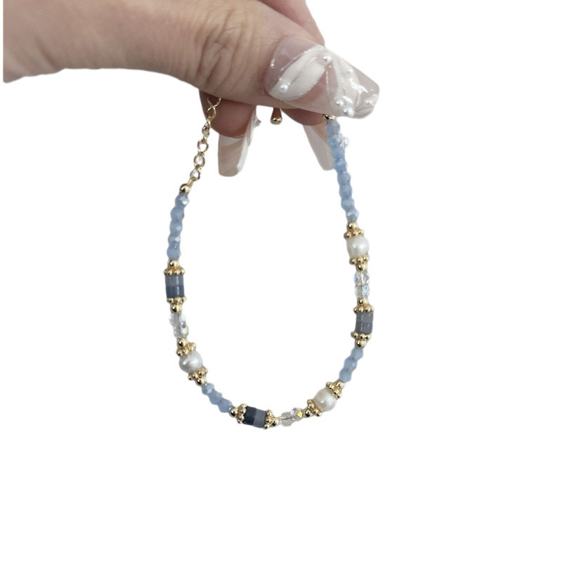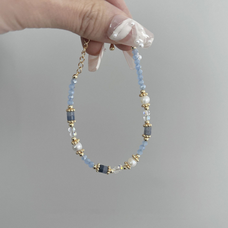gold plated-blue crystal natural stone freshwater pearl bracelet