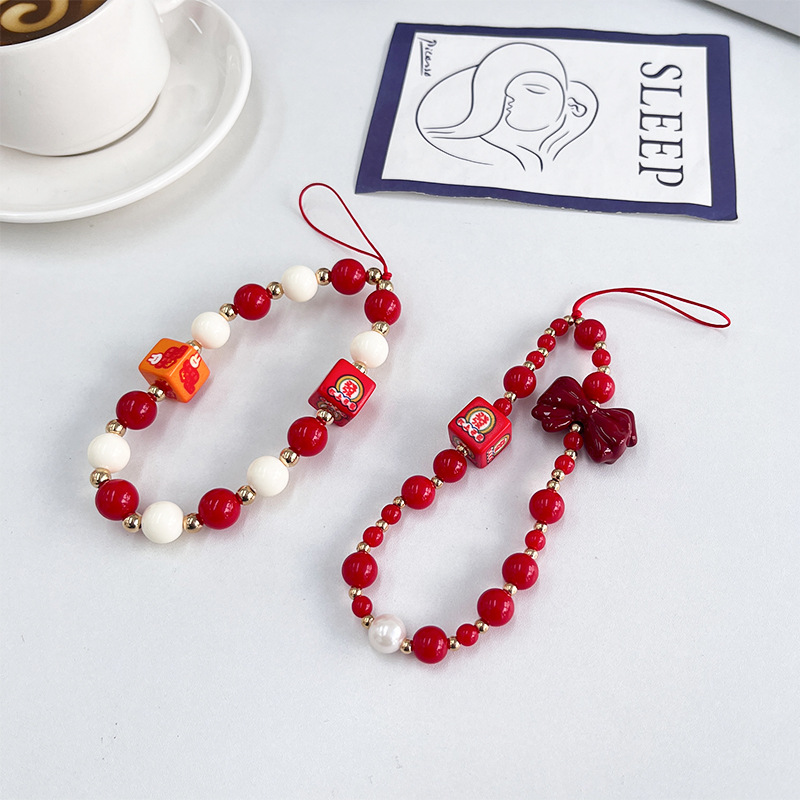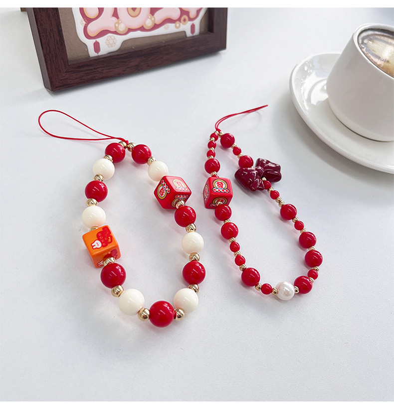 gld-sl482 red and white beads just want to make a fortune square lanyard