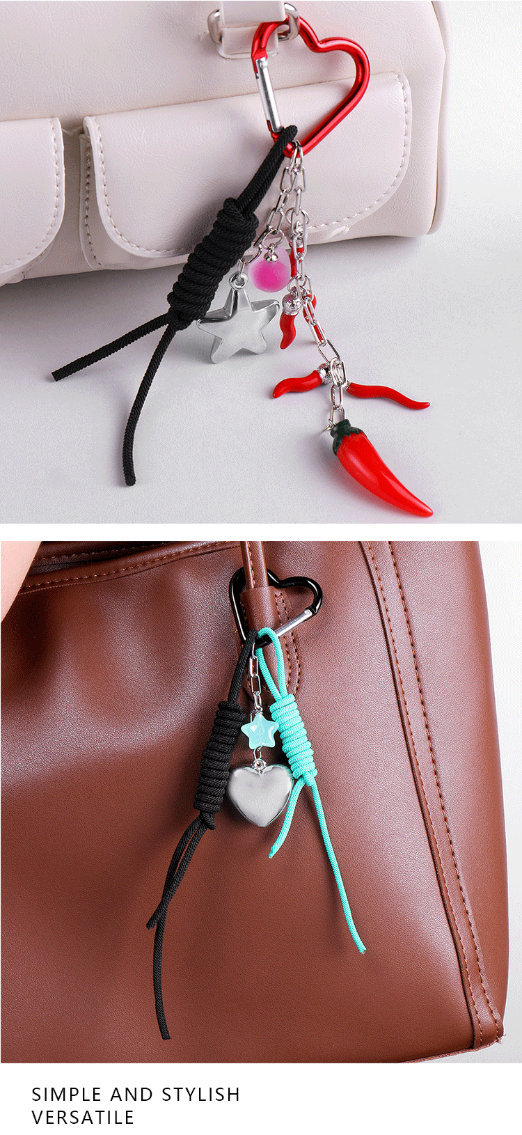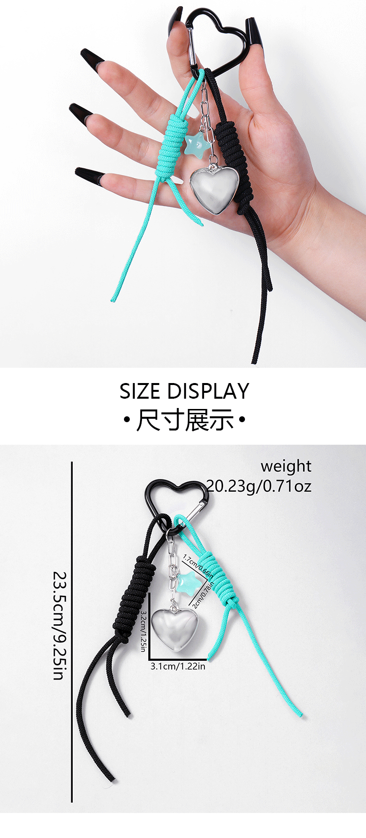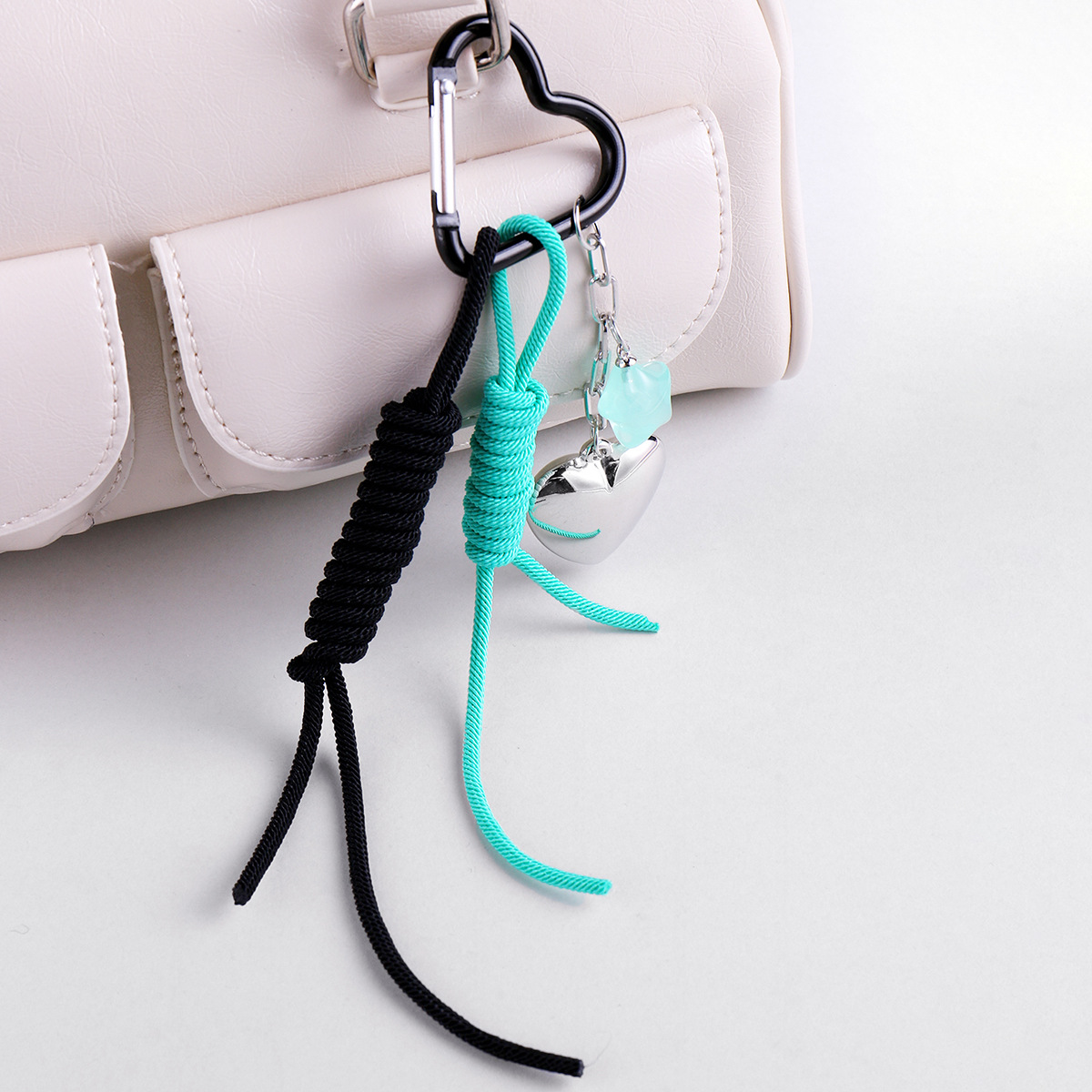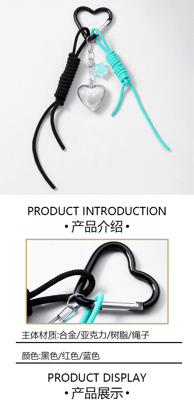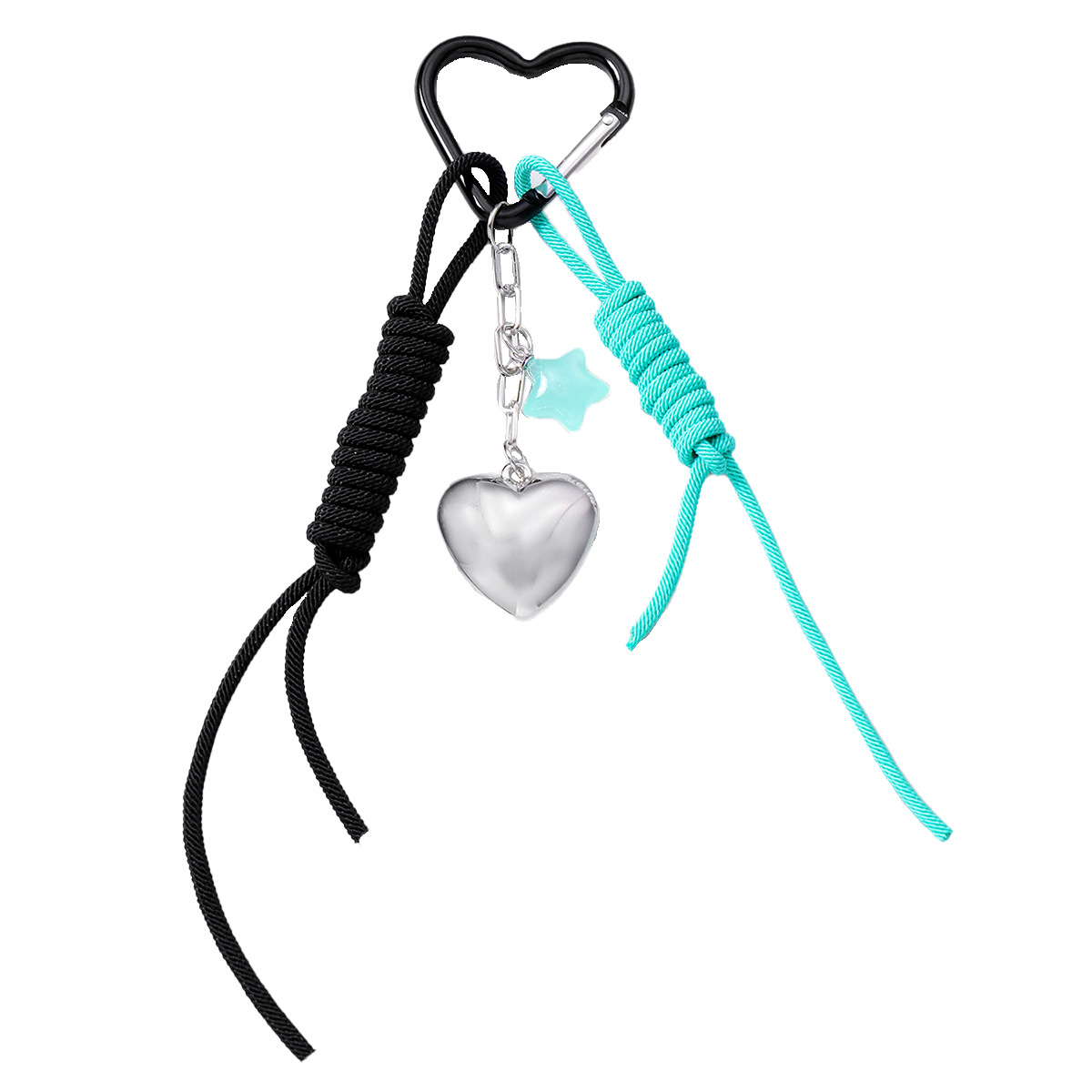 one silver love star two-tone hang rope keychain