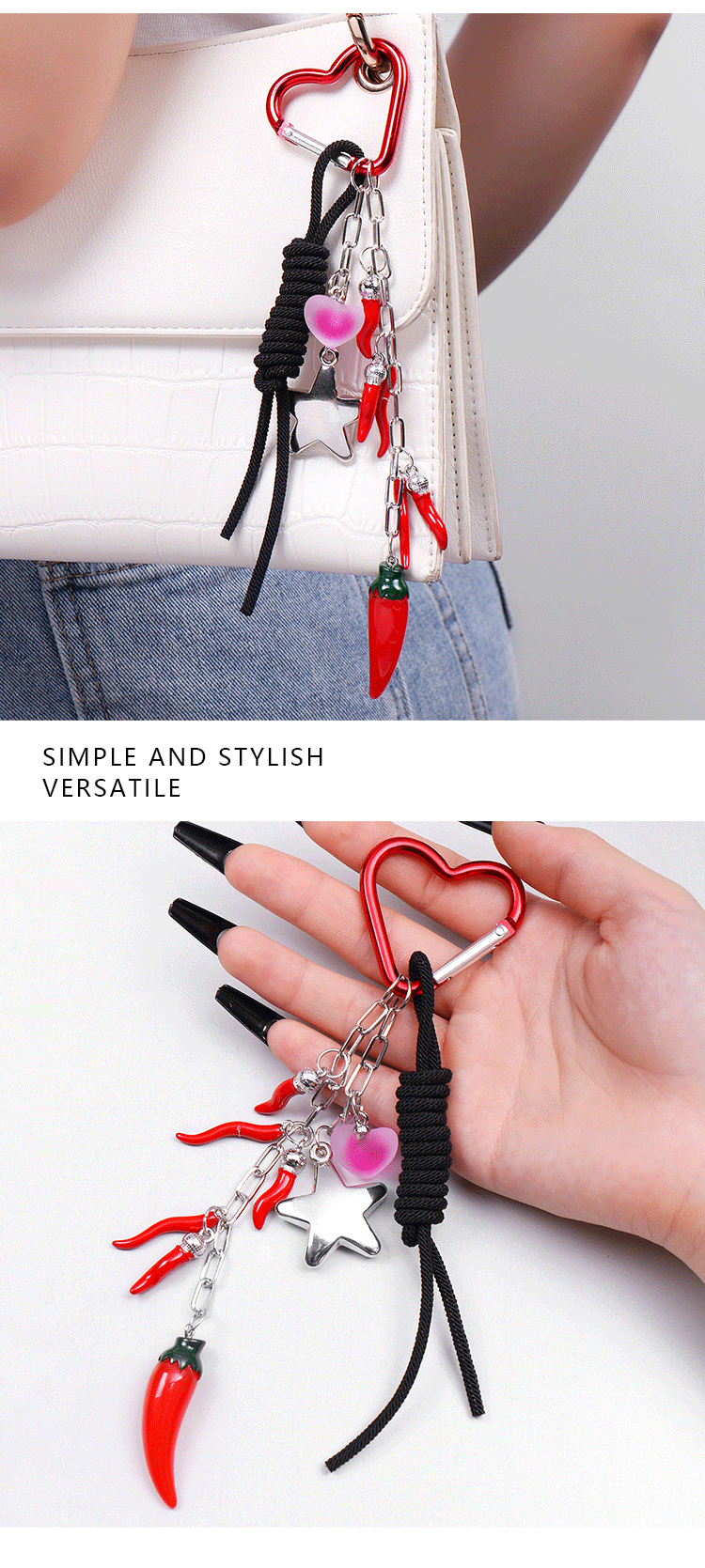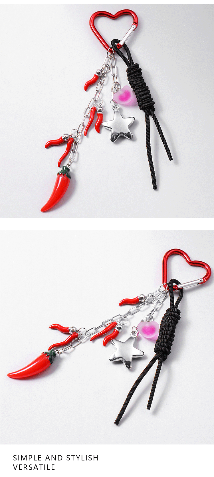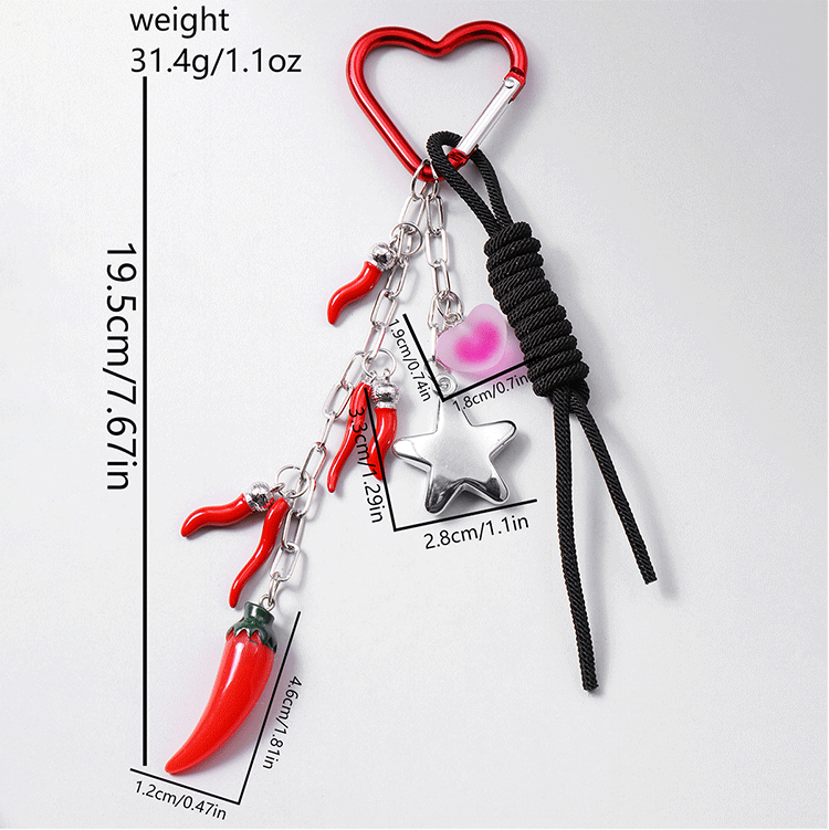 red simulation pepper love star hang rope key chain 1