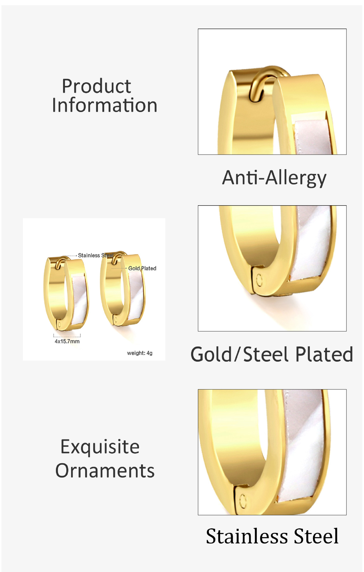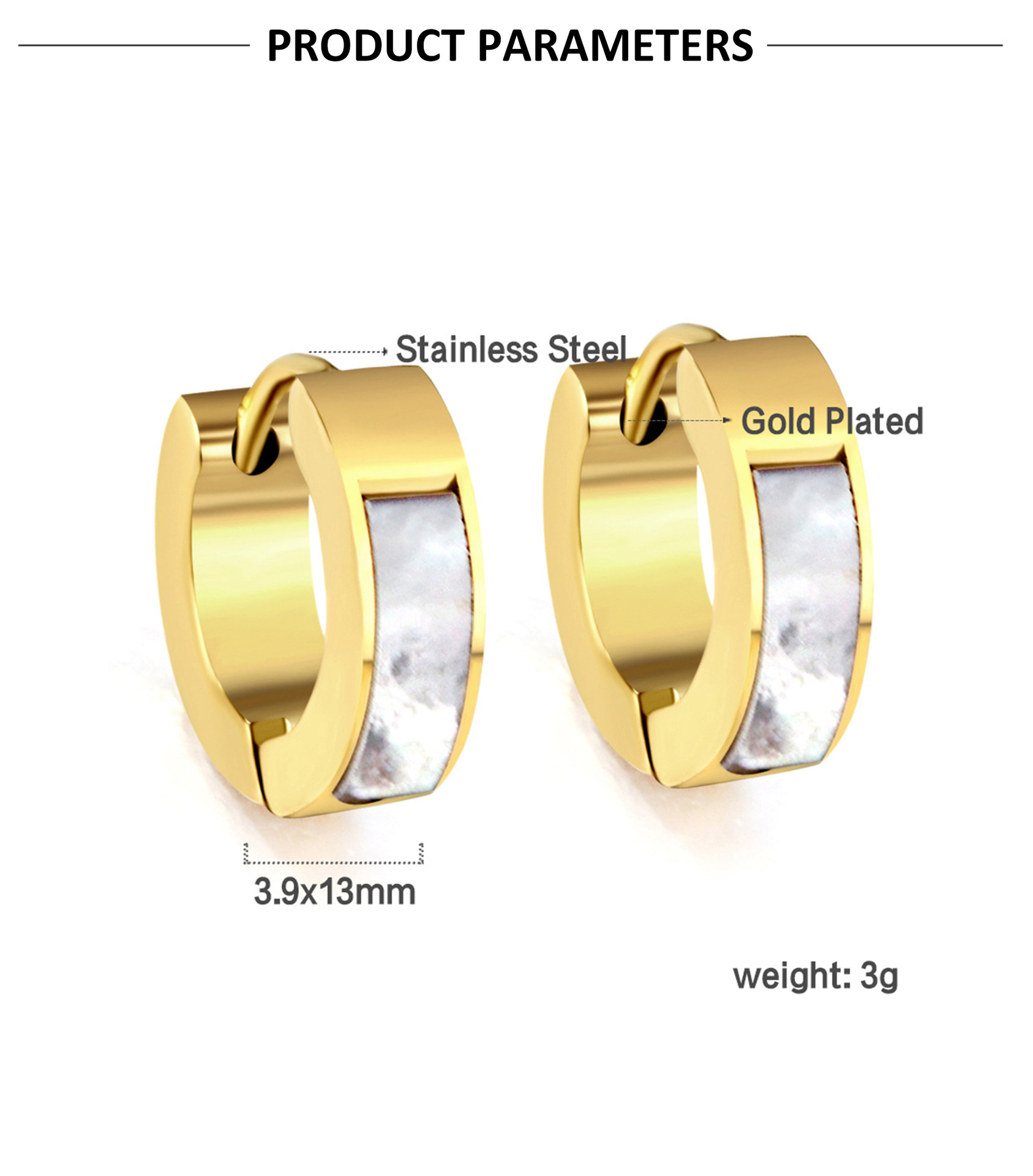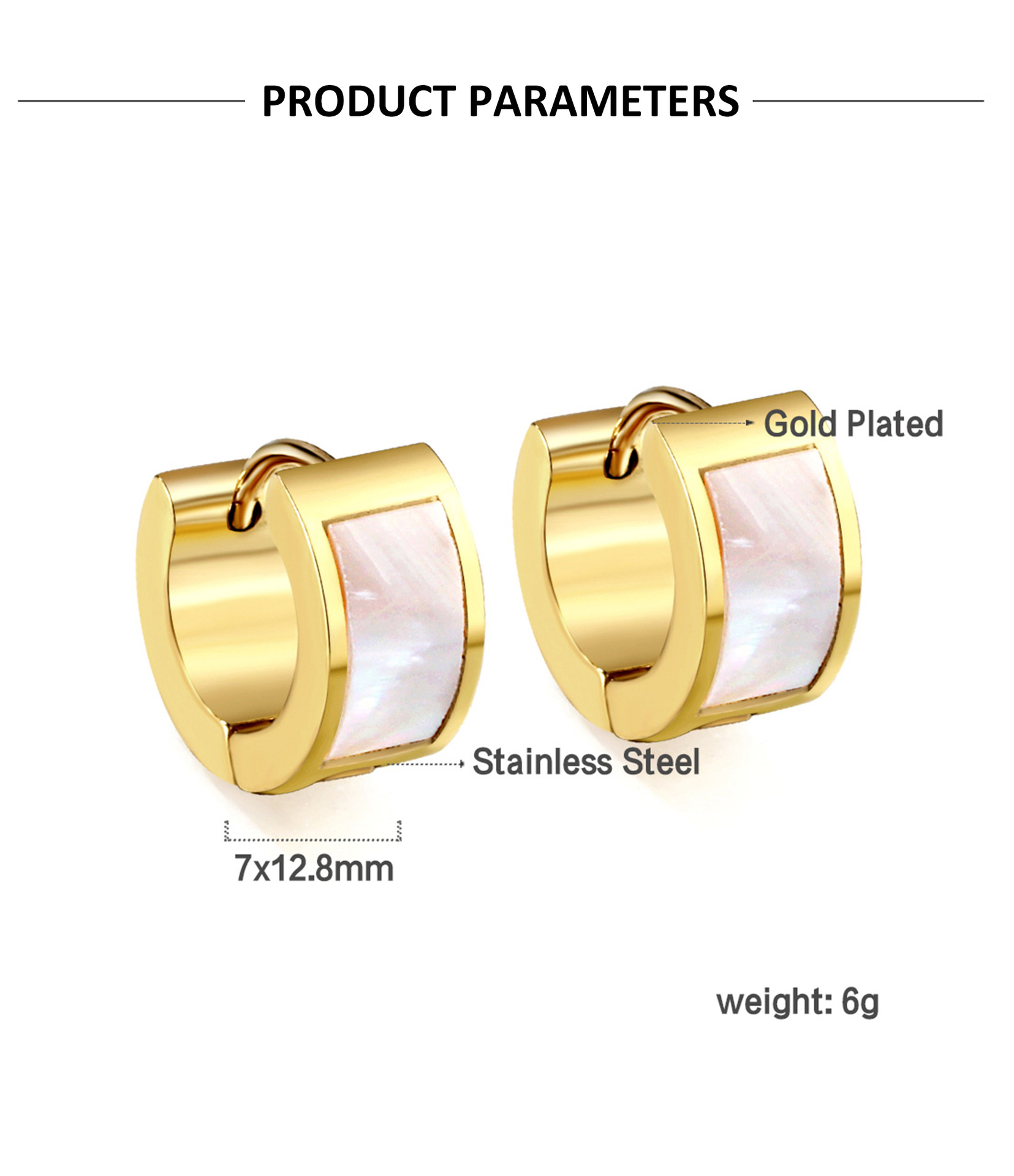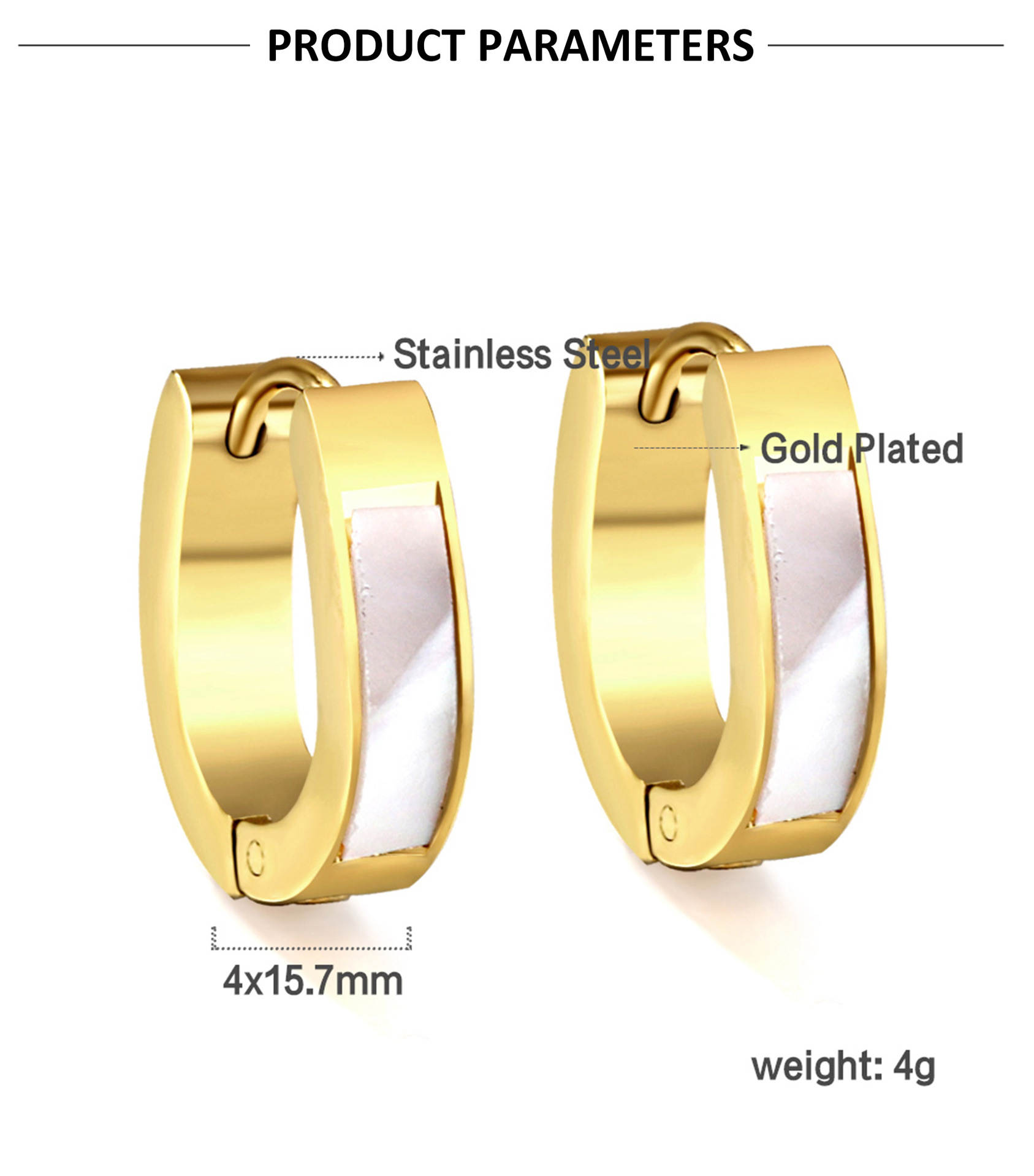 white shell oval ear clip 4*13 * 16mmea31730ag