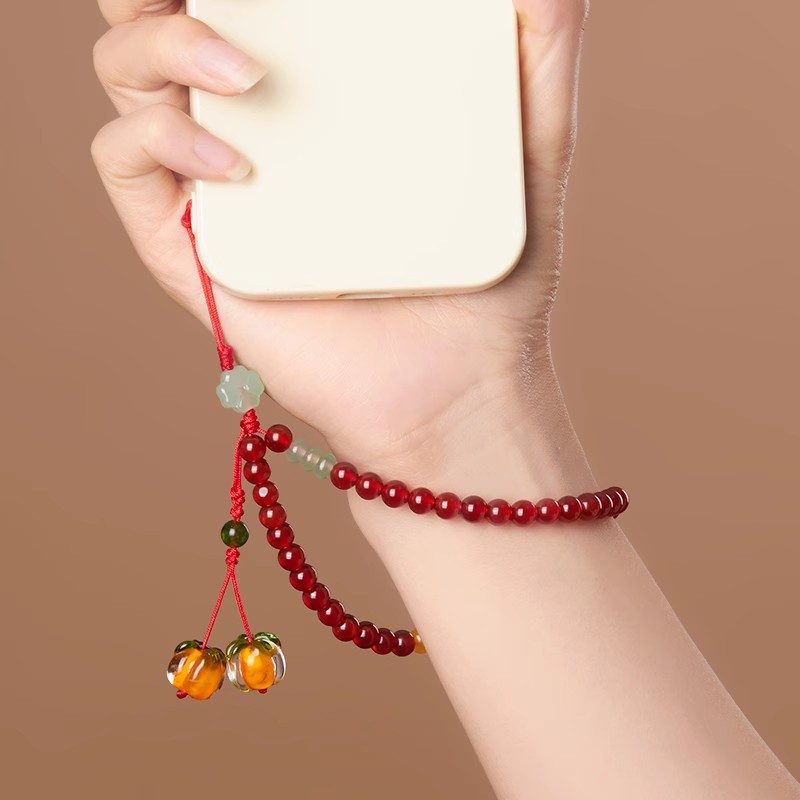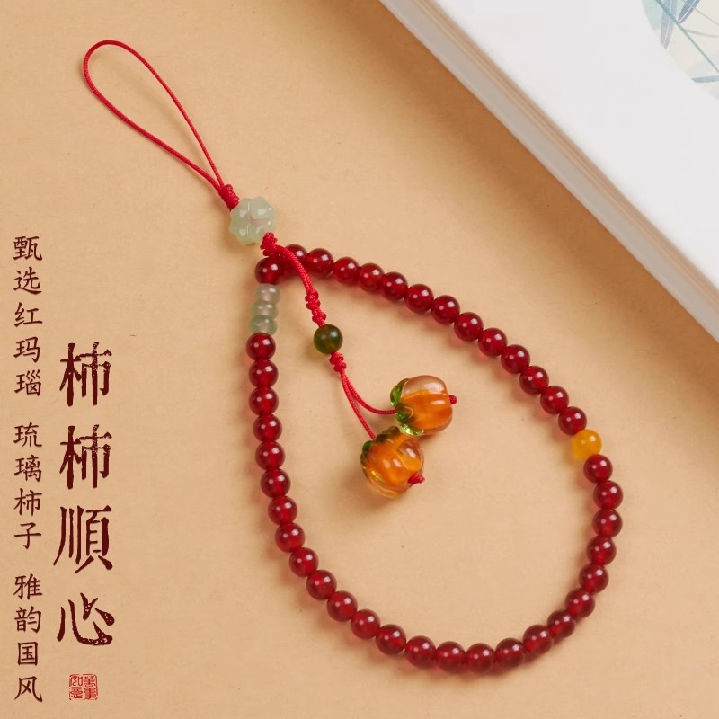 persimmon and persimmon shunxin-red agate mobile phone charm