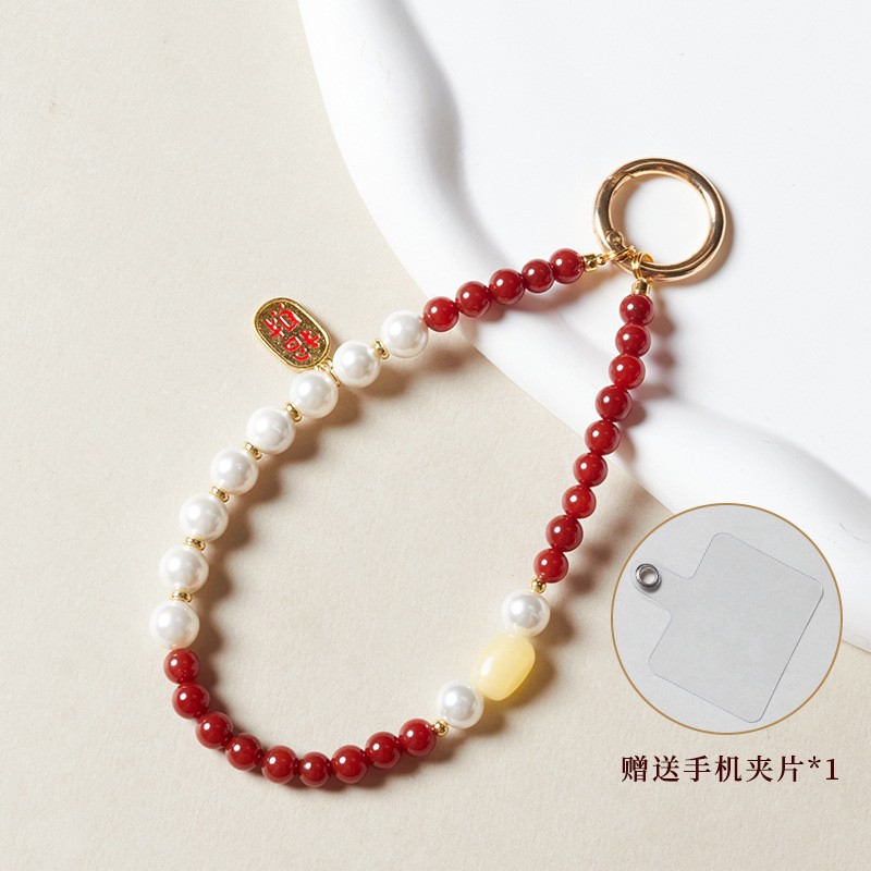 pearls and jade huashang-red agate mobile phone charm