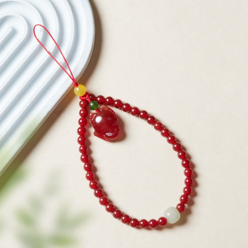 five gods of wealth-red agate mobile phone charm