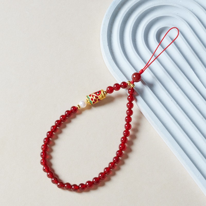 landing koi-red agate mobile phone charm