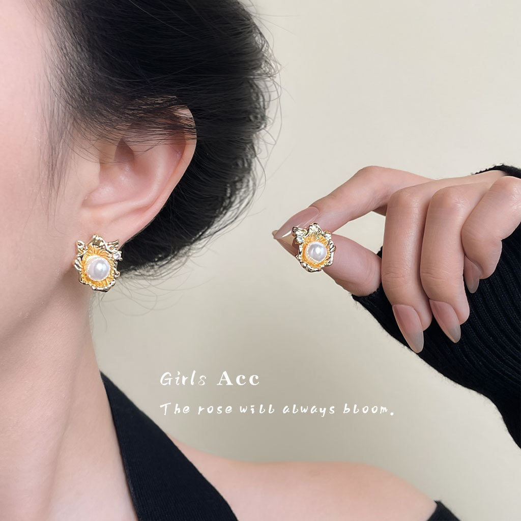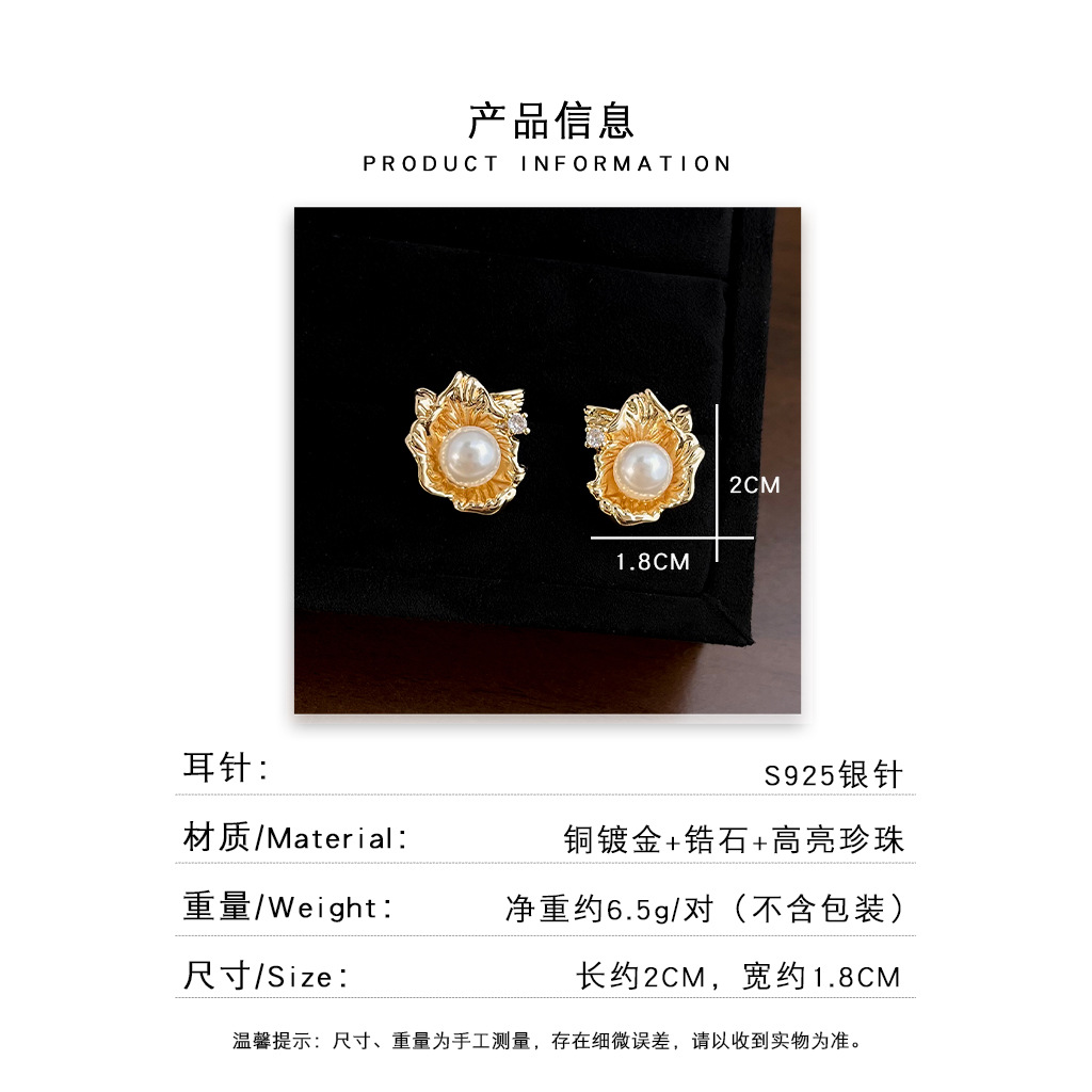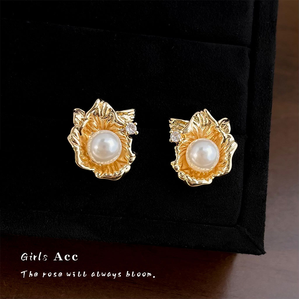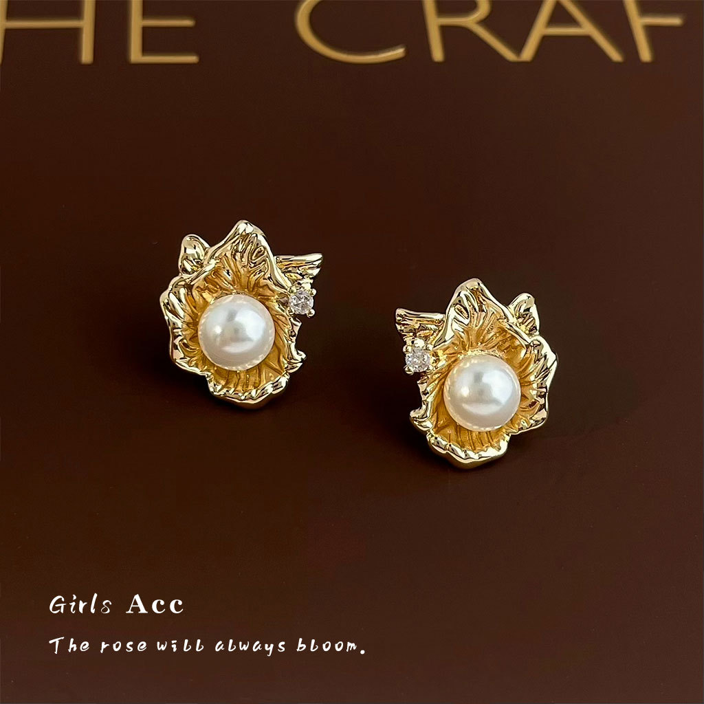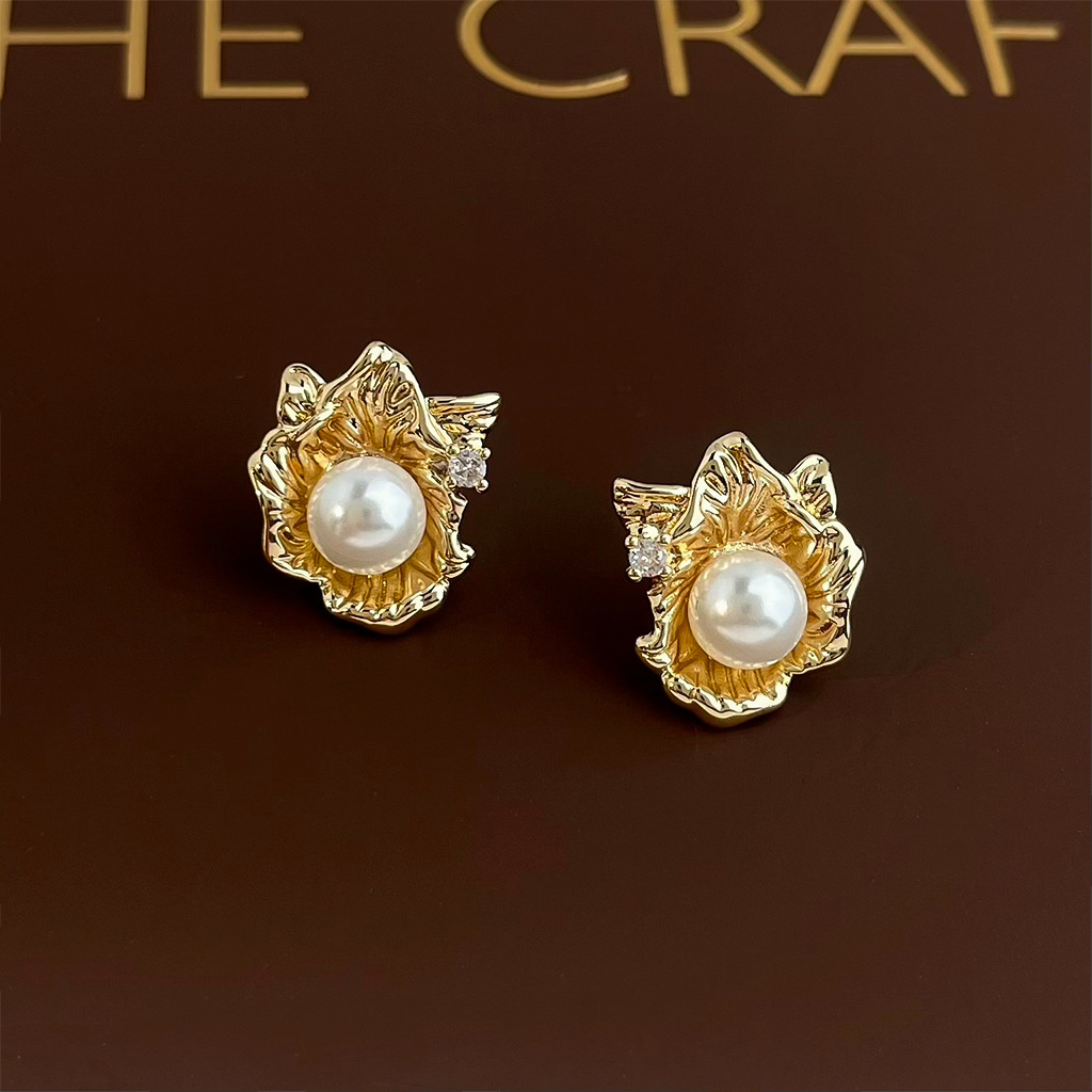 liquid flower pearl stud earrings
