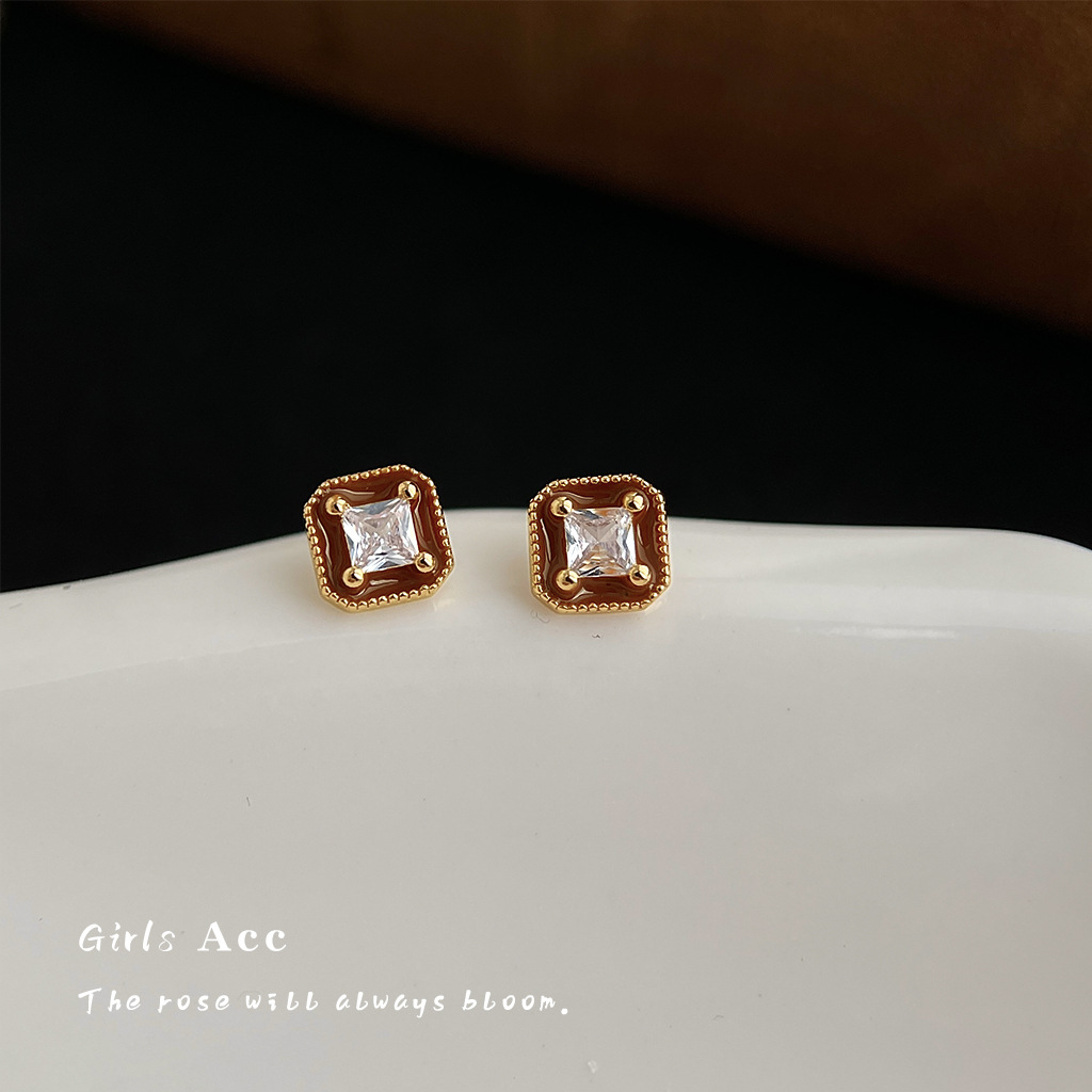 caramel drip glazed zircon stud earrings