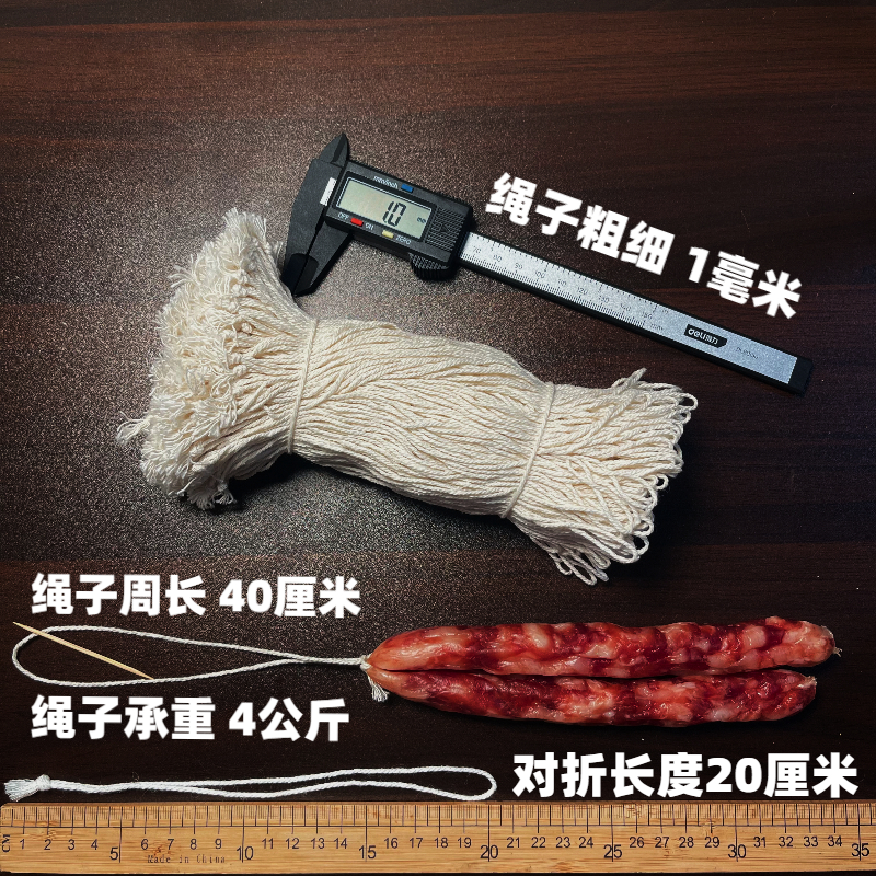 1 jin of polyester-cotton [soft] cord, folded in half to 10cm with a knot already tied, 1.3mm thick.