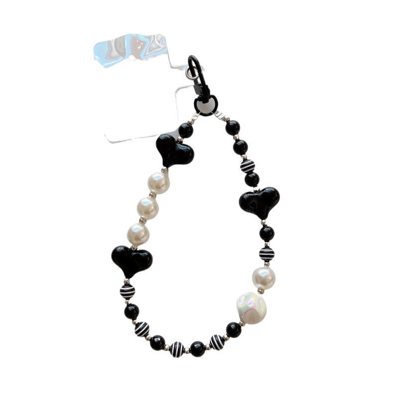k1430 bracelet short line black beads + black heart