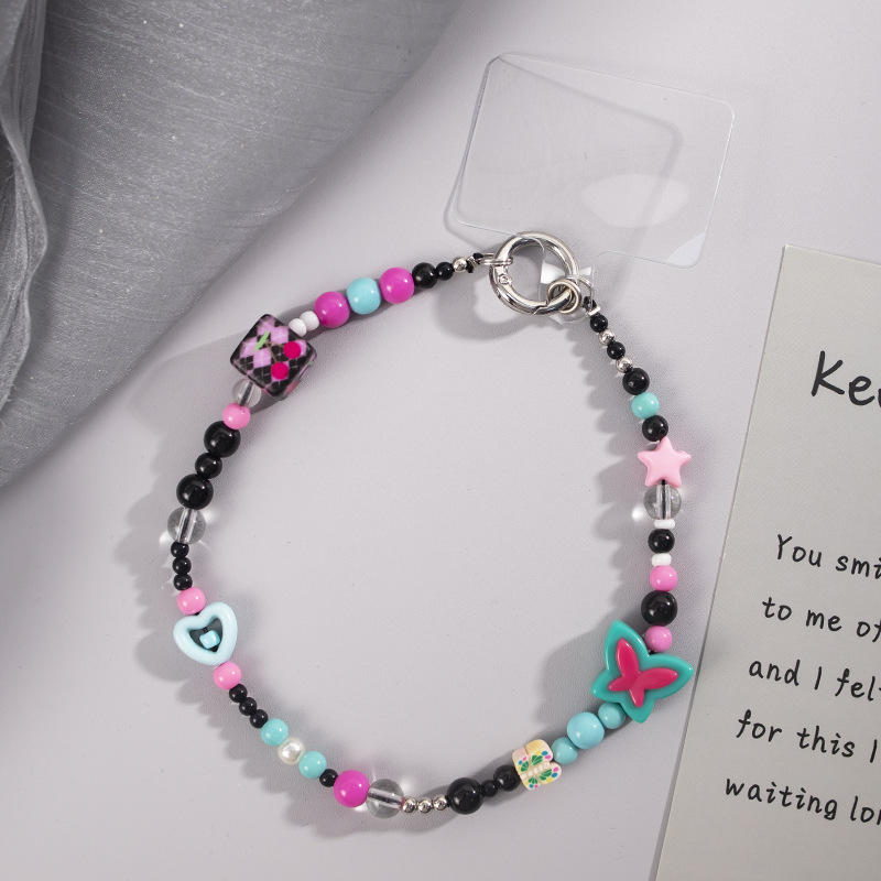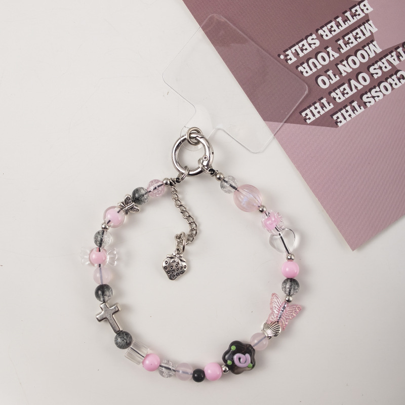 beaded series mobile phone charm short 30cm pink transparent star butterfly pendant