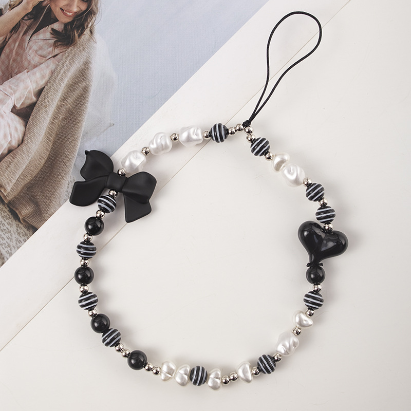 beaded series mobile phone charm short 37cm black bow shaped pearl
