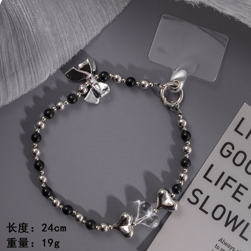 Cellphone Lanyard Butterfly Knot Wrist Band Phone Chain Beaded High-end Black General Round Buckle Pearl Cellphone Lanyard