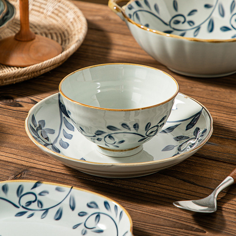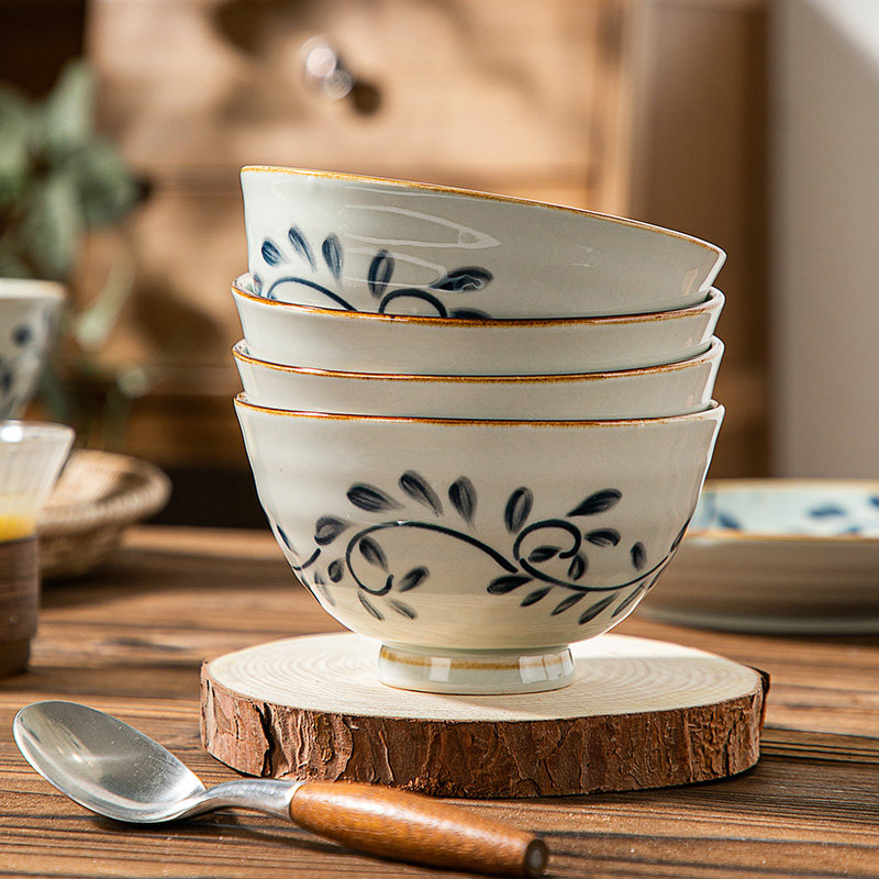 5-inch rice bowl-ink leaf green branch