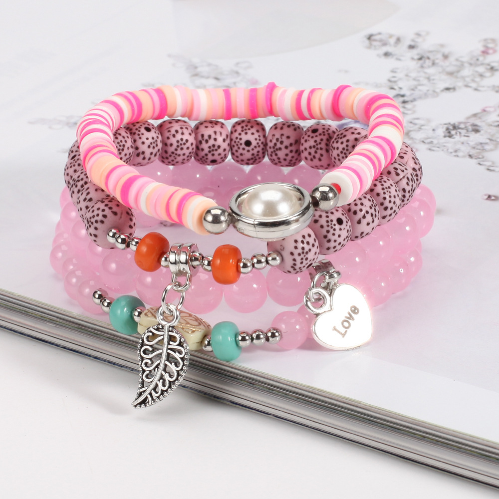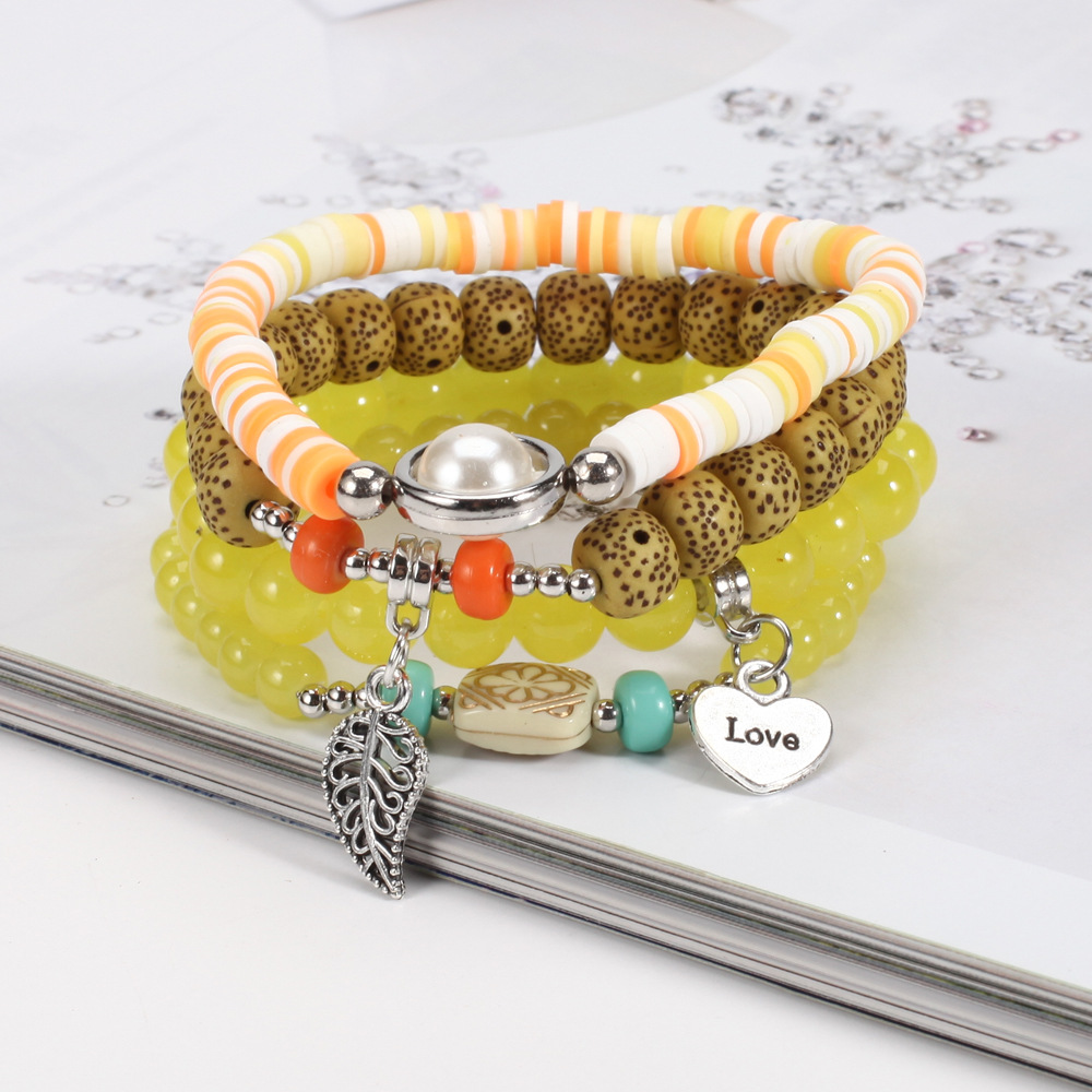Product Title: Heart-shaped Leaf Pendant Bracelet with Pearl Accessories and Glass Bead Multilayer Ladies' Bracelet