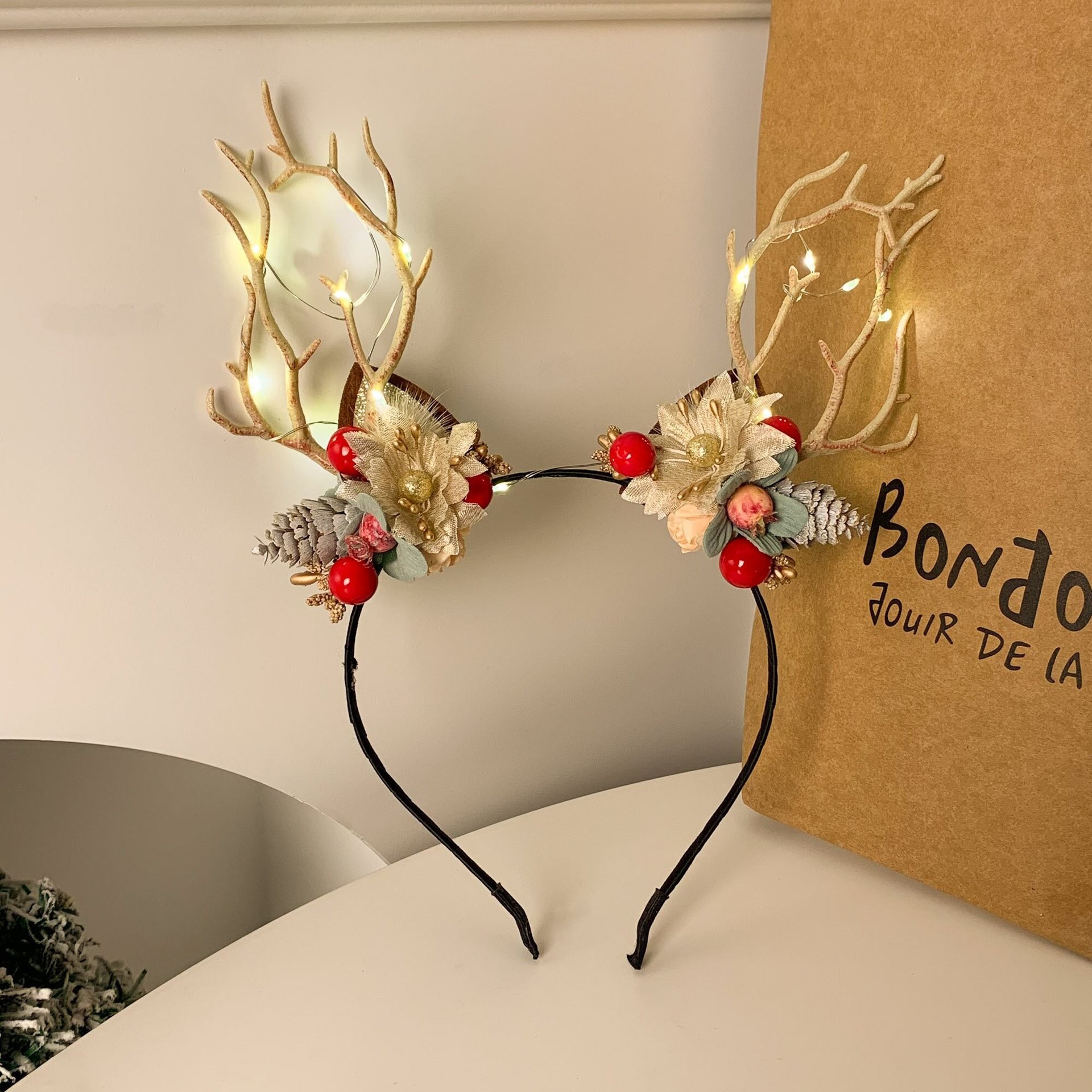 golden peony pine cone antlers [colored lights]]