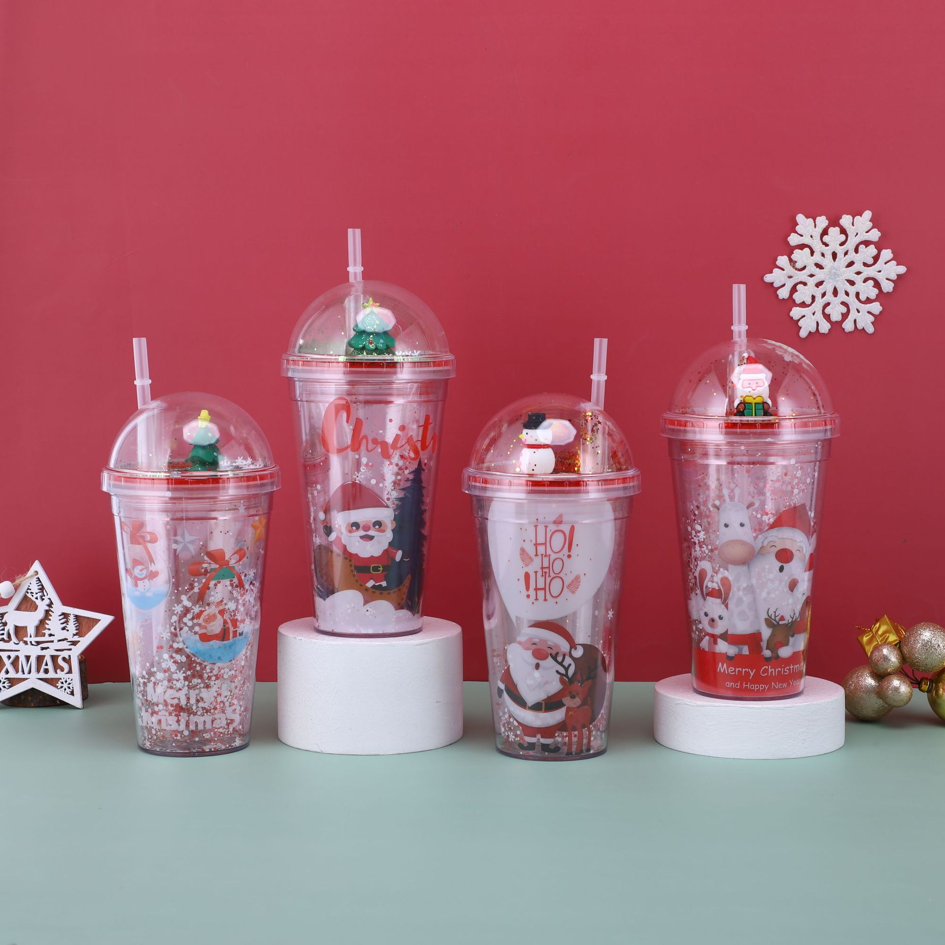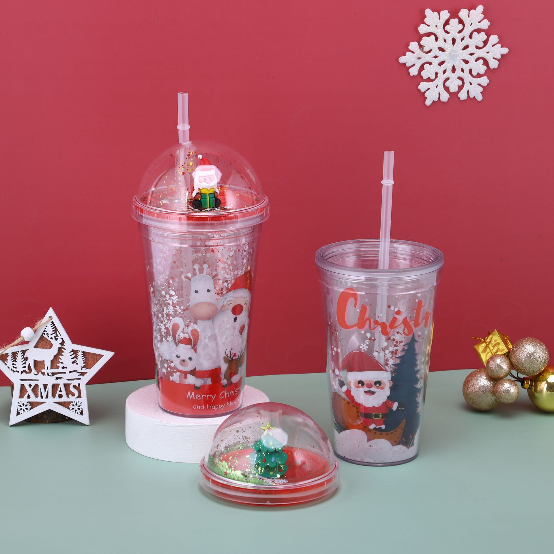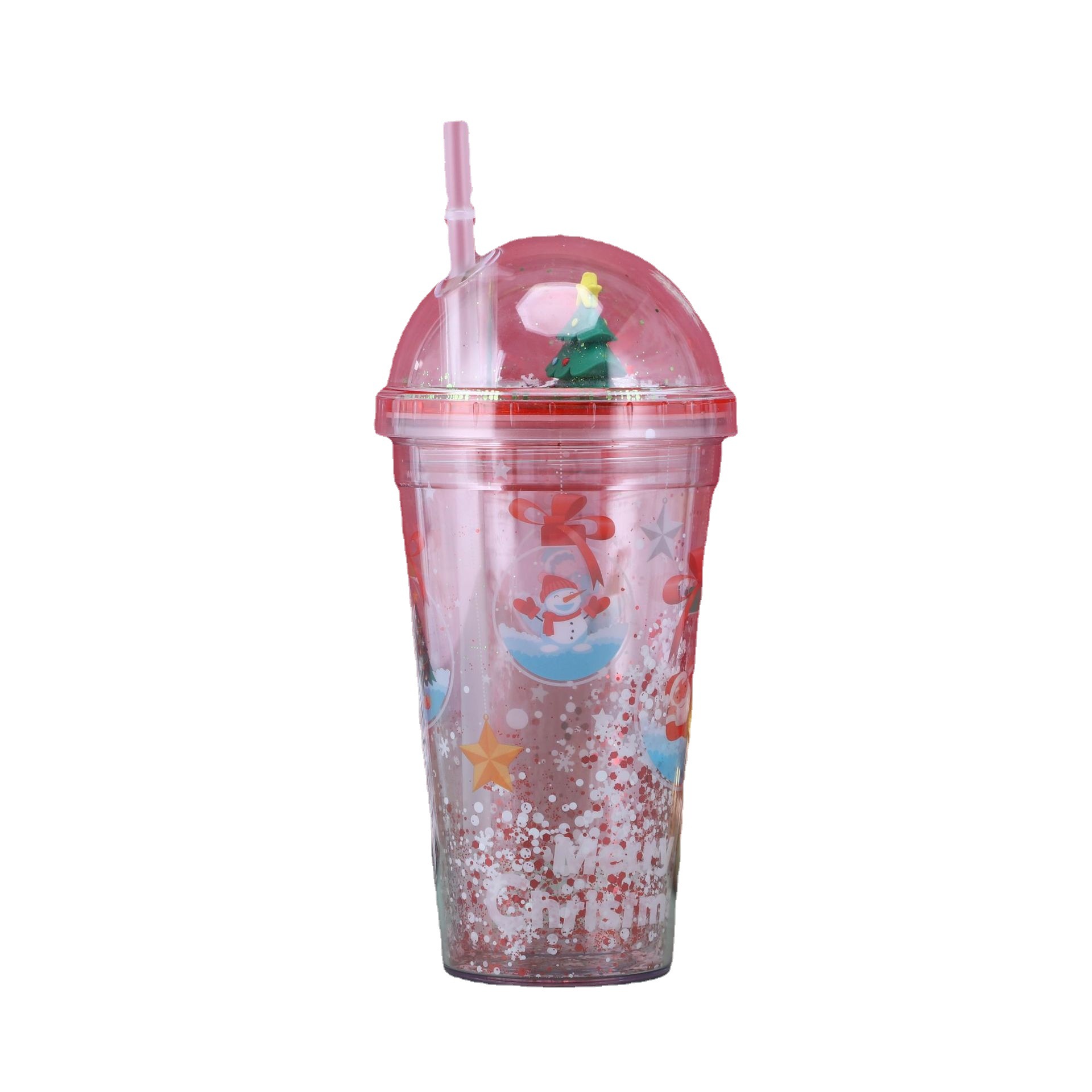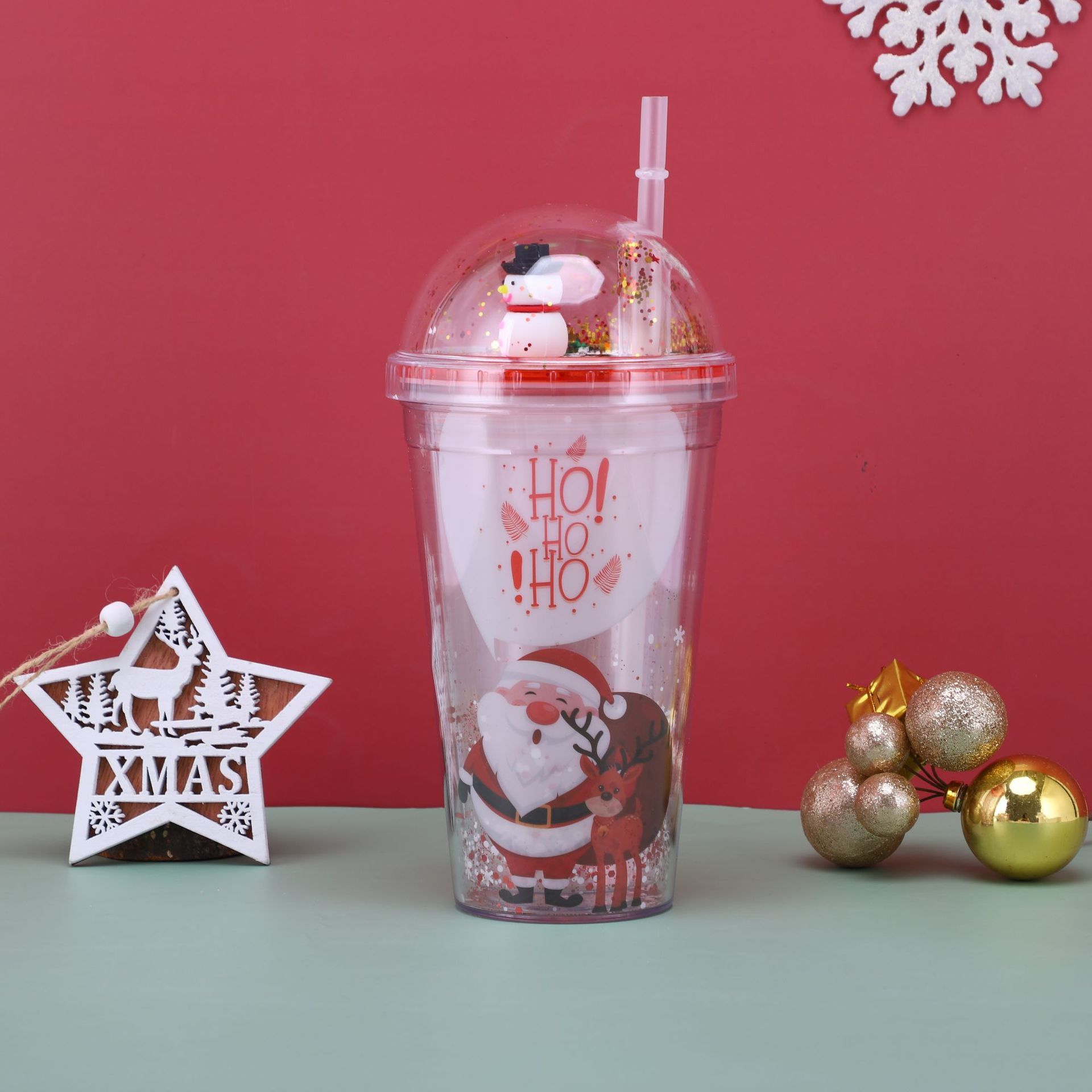 【Product Name】: Christmas Double-Layer Plastic Straw Cup