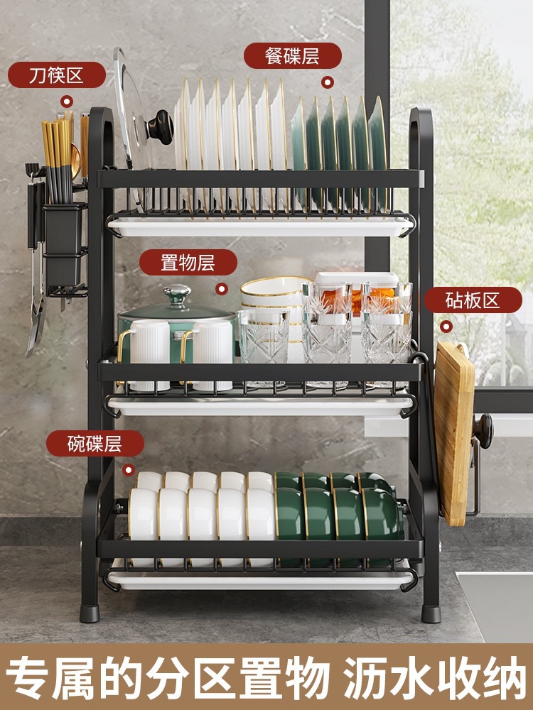 kitchen storage rack draining bowl rack household bowl plate bowl and dish storage rack multi-functional table drying bowl storage rack