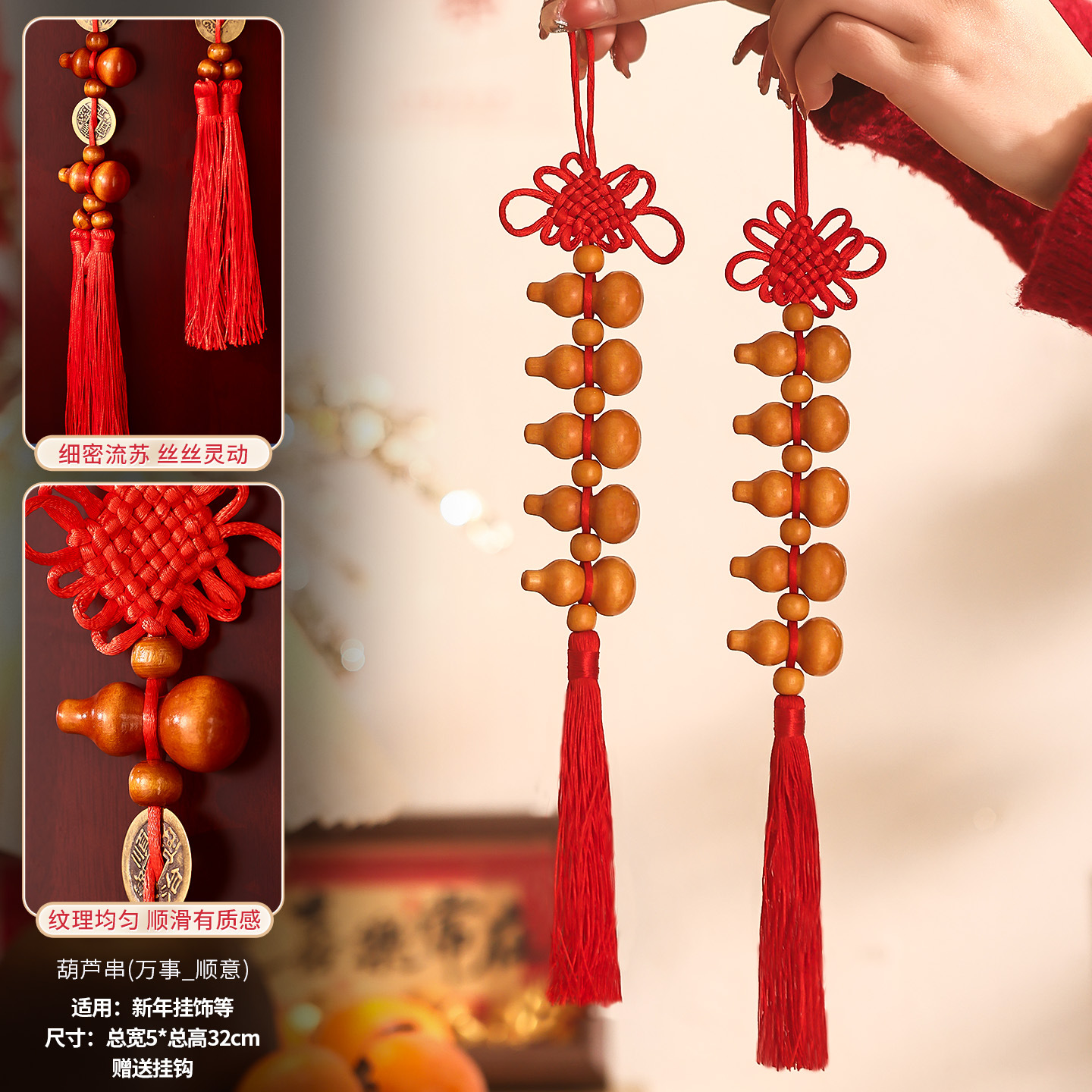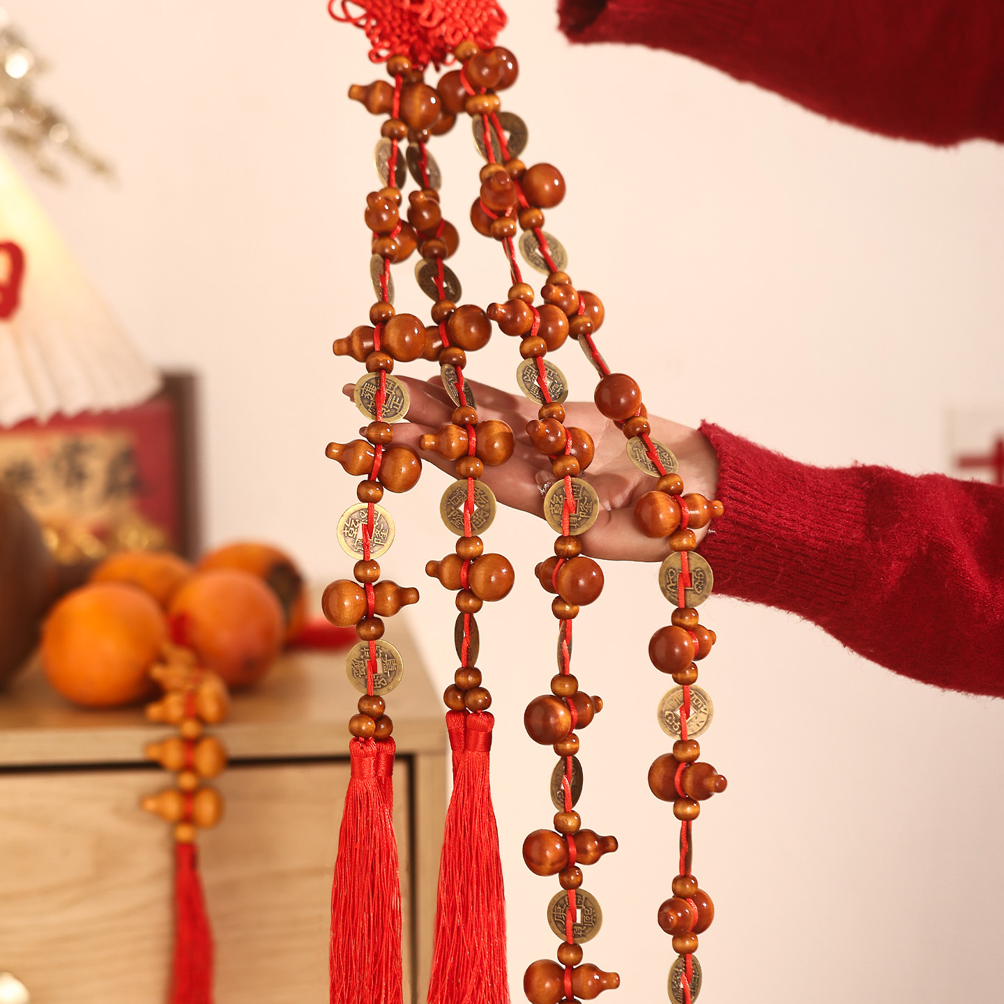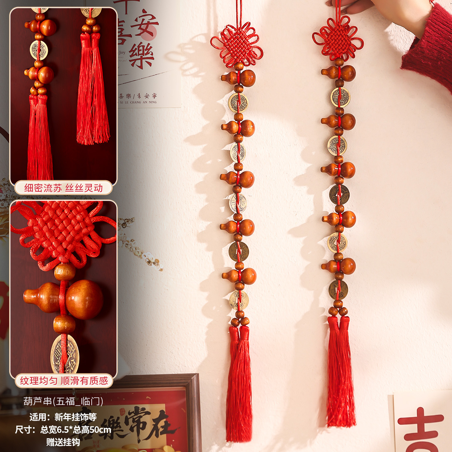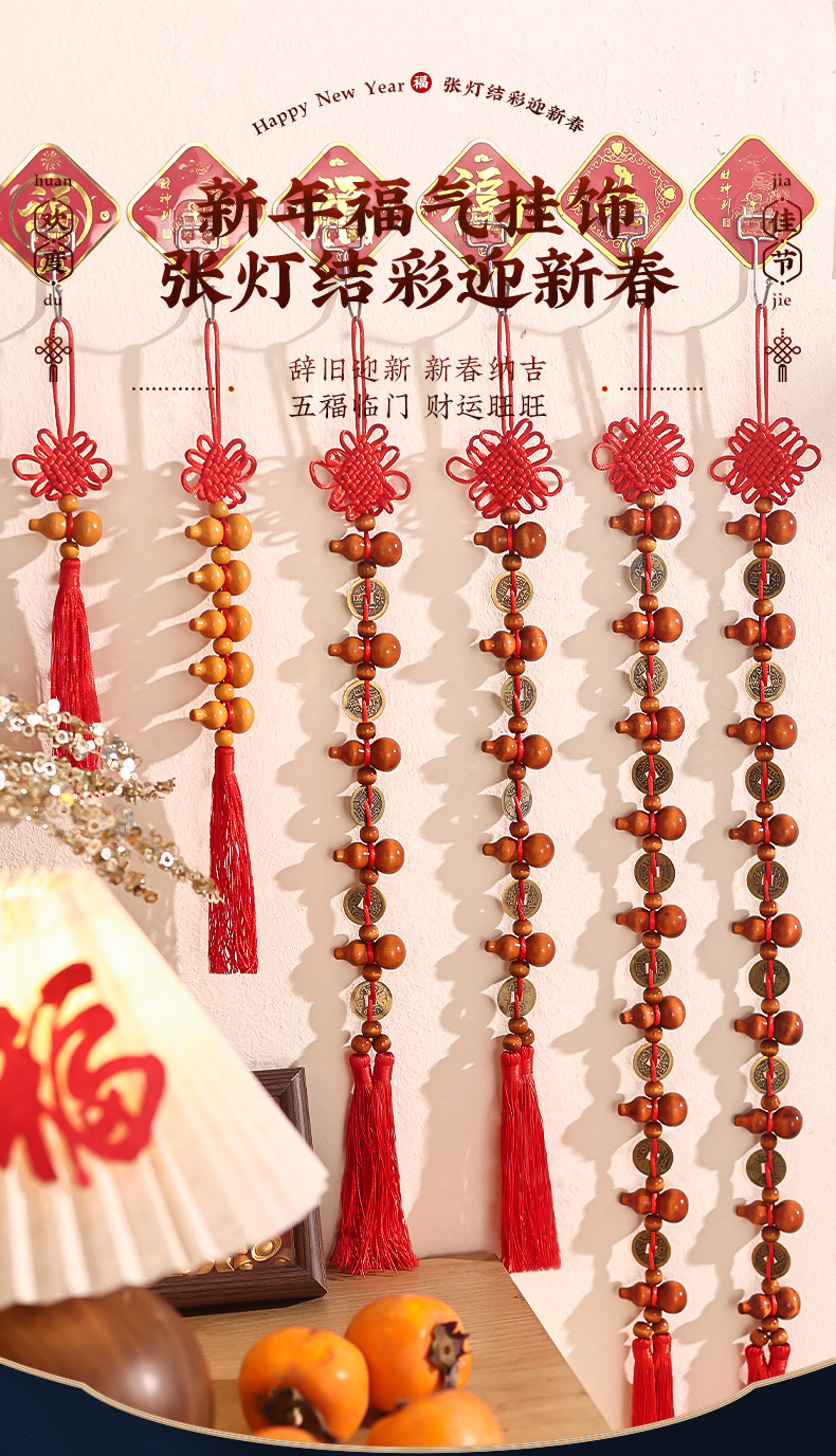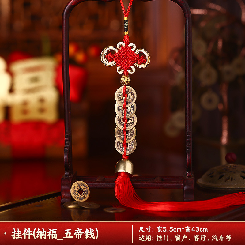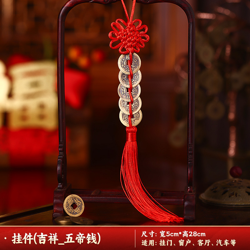 [auspicious] qing dynasty five emperors' coins chinese knot (two strings)
