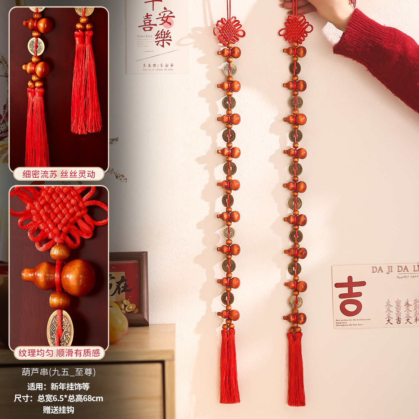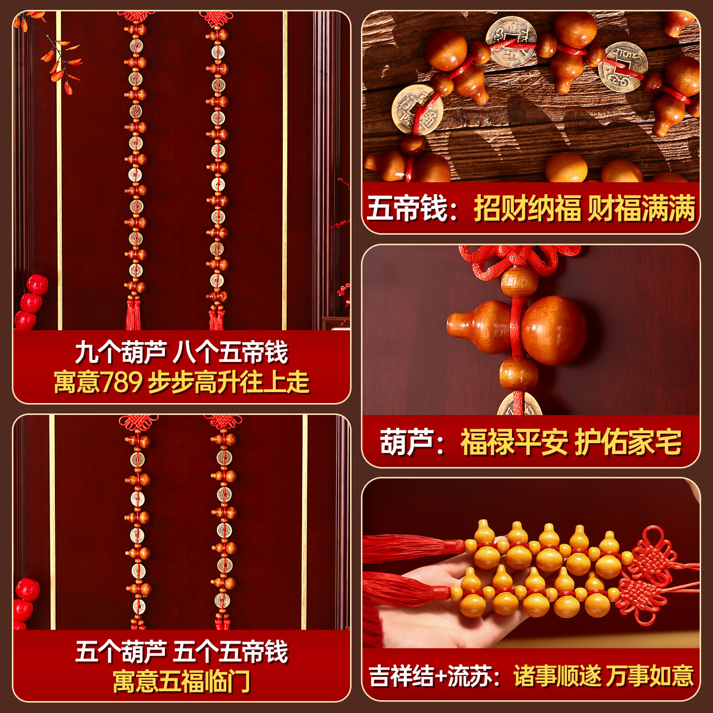 [ping an] qing dynasty five emperors' coins chinese knot (two strings)