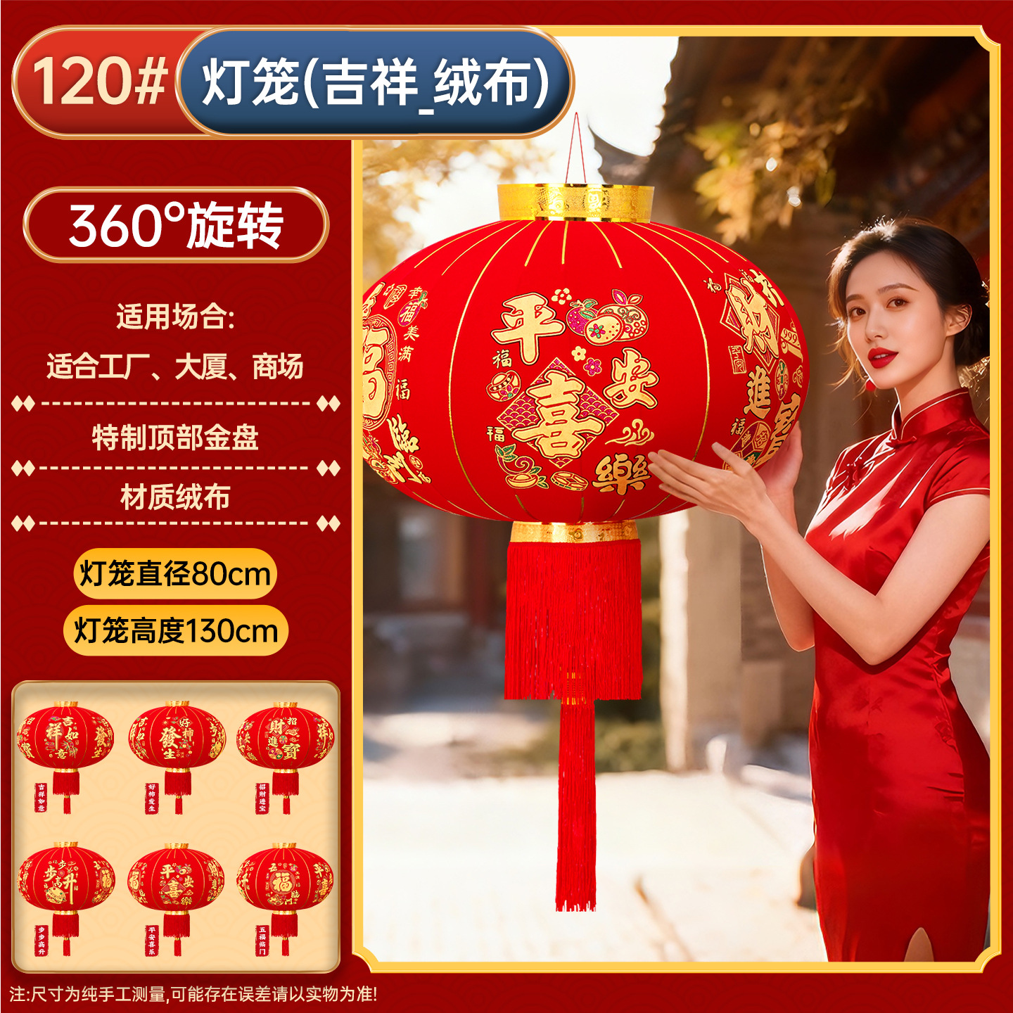 Wholesale factory large red lanterns, spring festival New Year decorations, New Year lanterns, outdoor waterproof advertising flocking lanterns, 2026 new model lanterns, long pole lanterns, wedding, spring festival, New Year, gate entrance, blessing word, happiness word lanterns