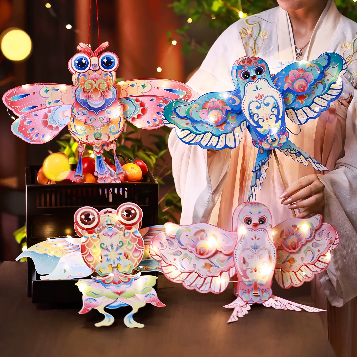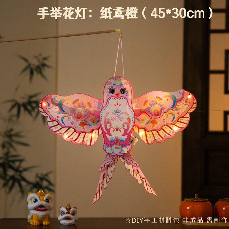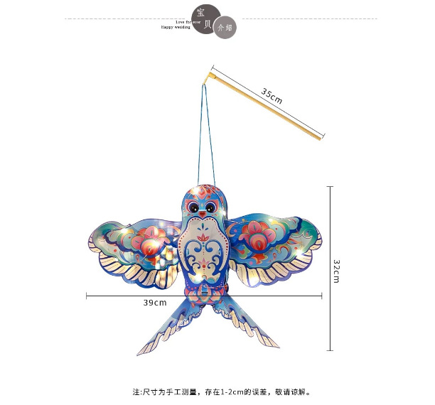 colorful illuminated diy lantern h-[blue swallows — can be held or carried]