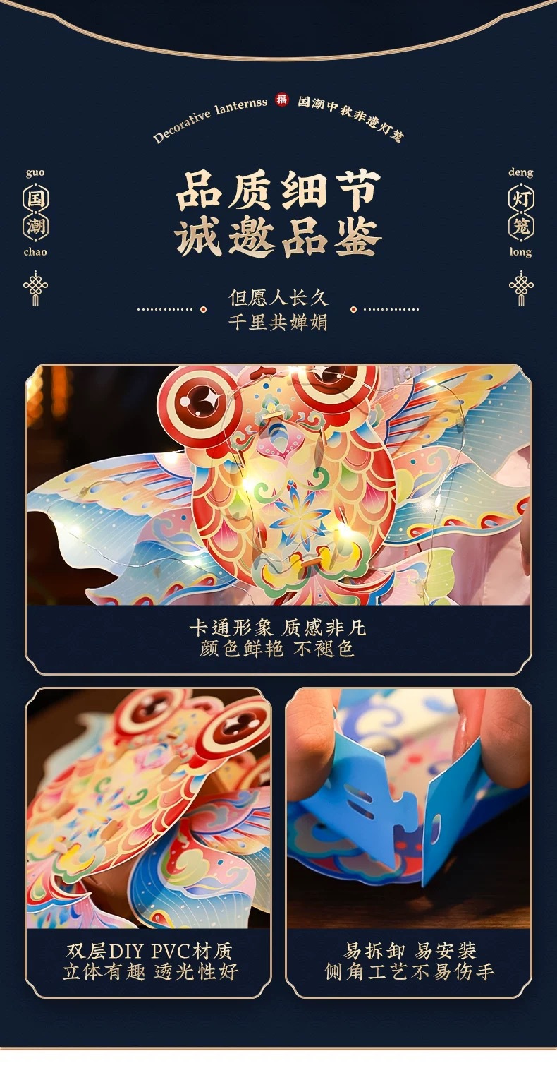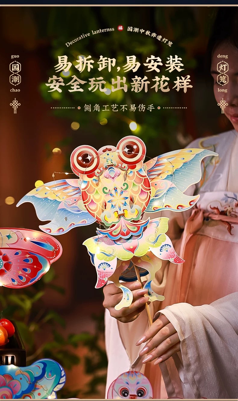 pvc waterproof triangle ribbon lantern h-moon rabbit poetry
