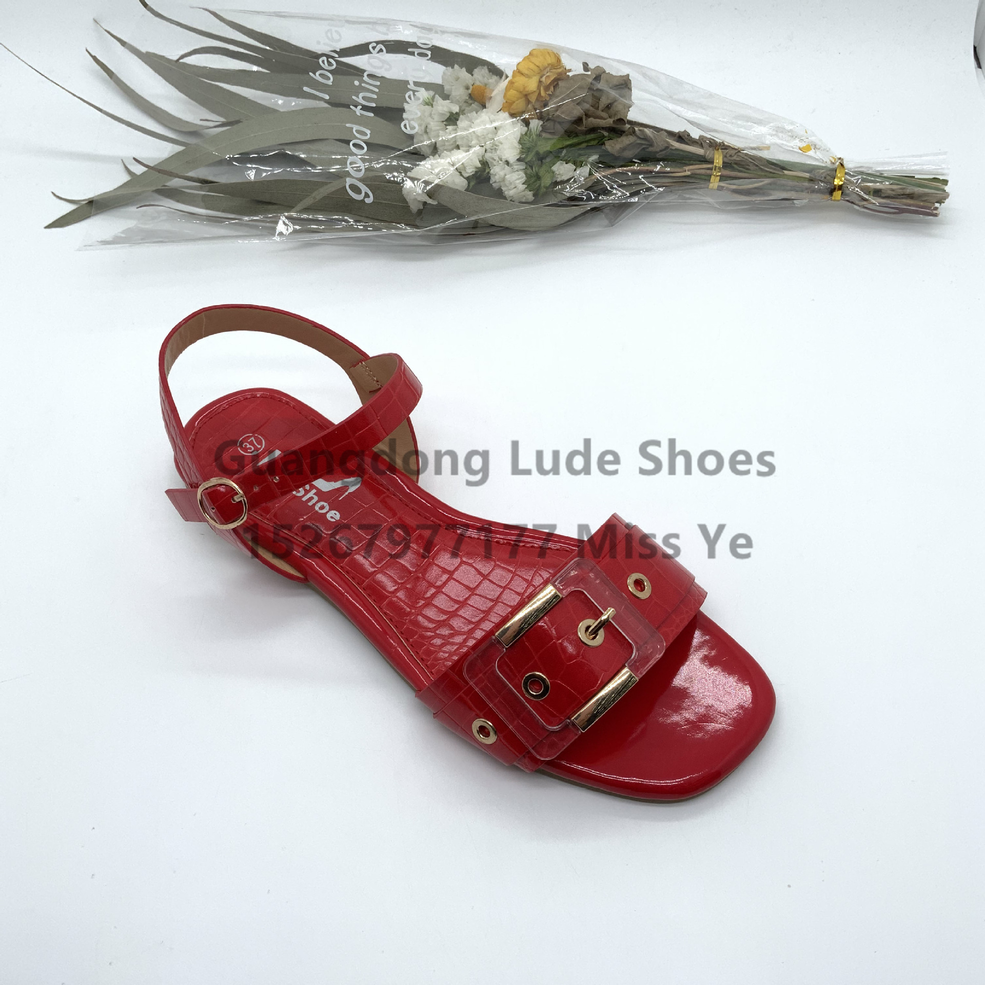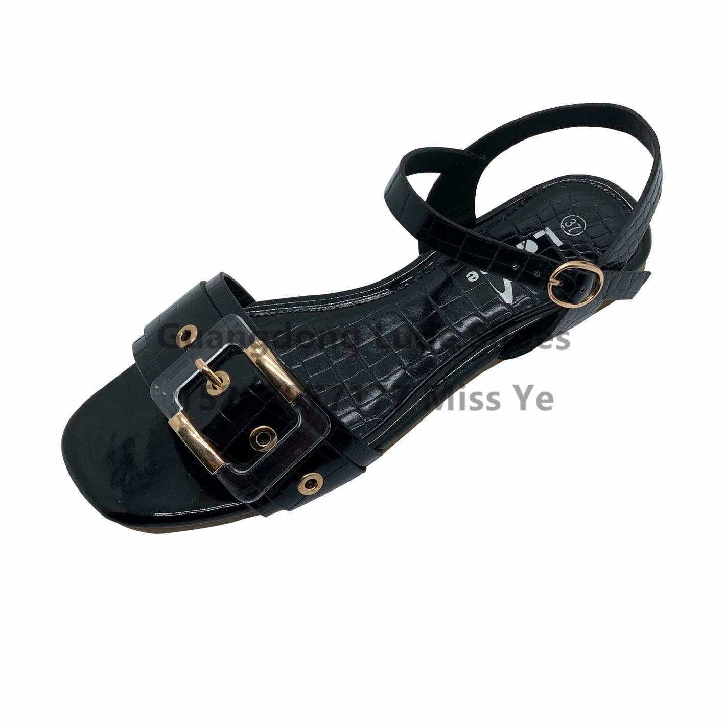 patent leather flat sandals square decorative button meiko touching photography atmosphere full