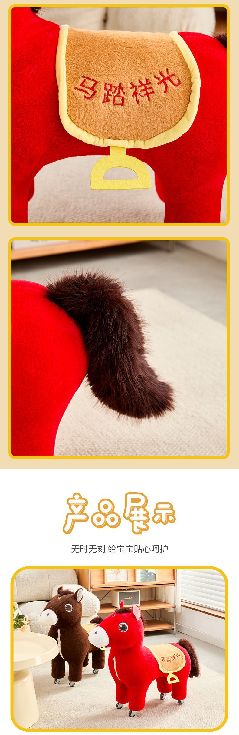 [lucky pony in the year of birth] camel + ultra-quiet wheel