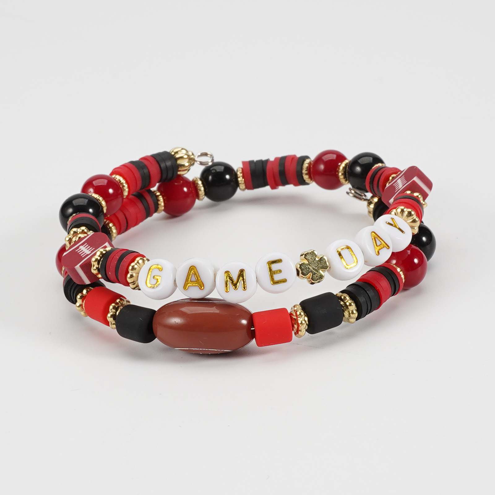 Cross-border hot-selling rugby match day sports bracelet, twisted soft clay beaded elastic mother bracelet jewelry
