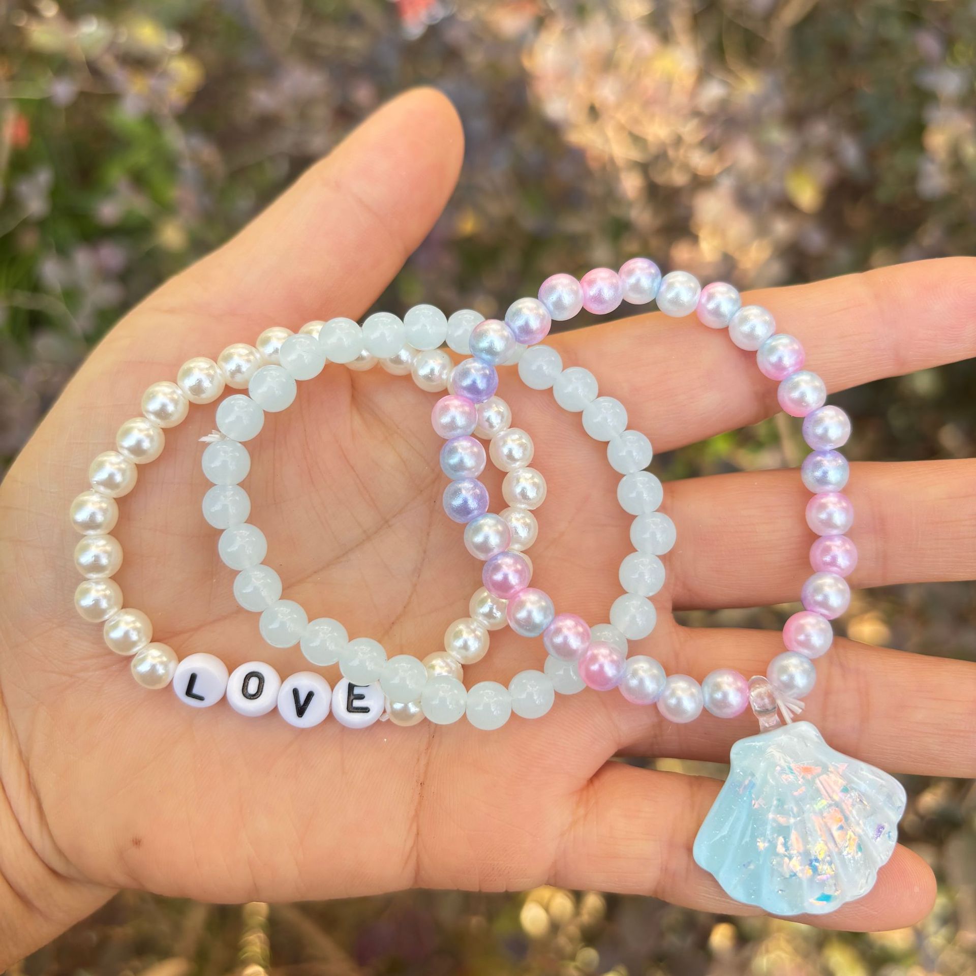 one pink shell bracelet