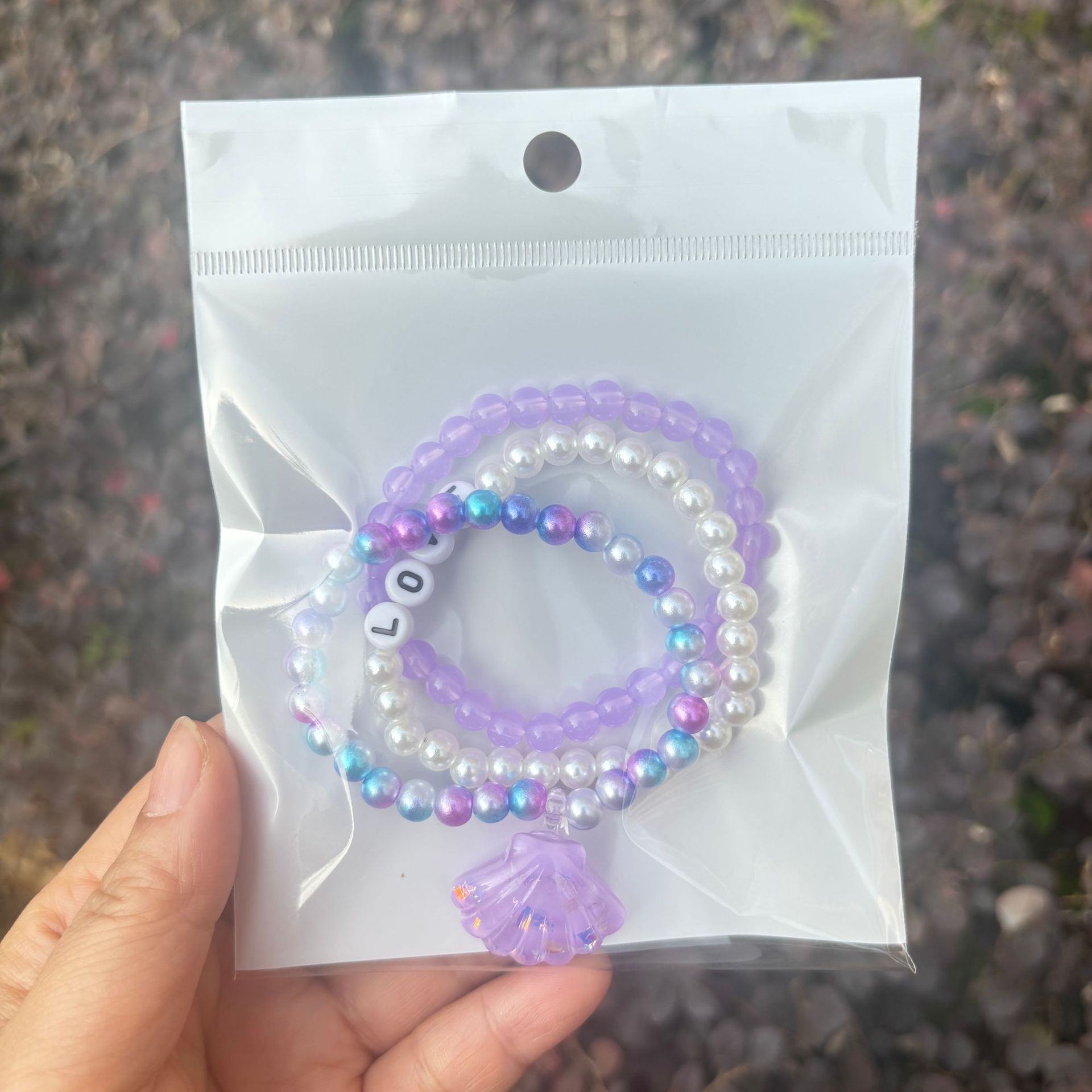 one purple shell bracelet