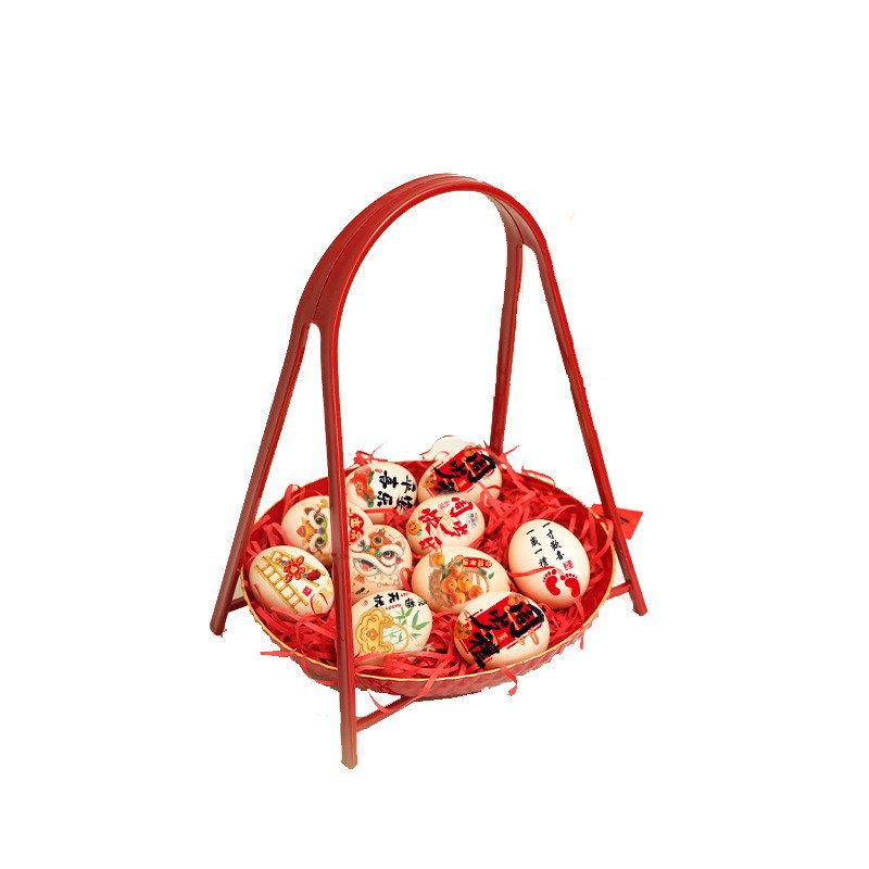 egg paste-hundred days b + bamboo plate + raffia