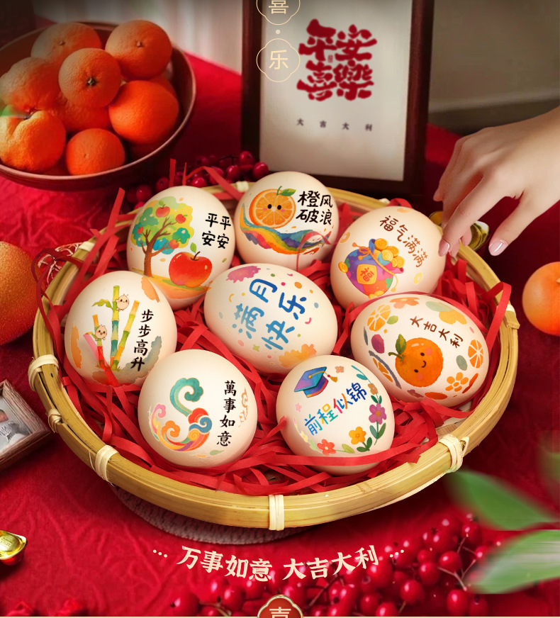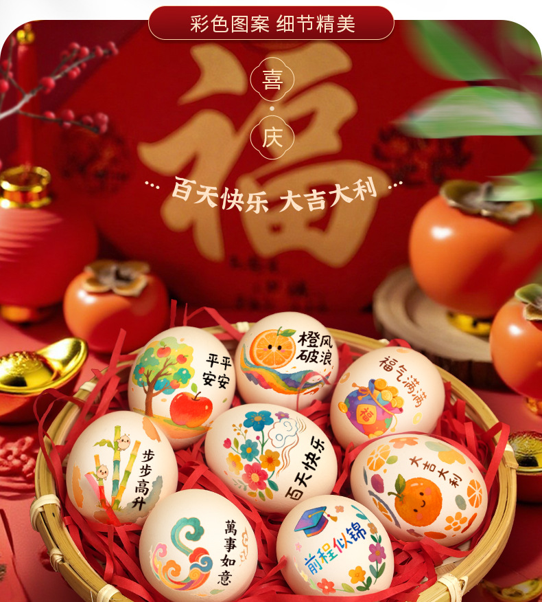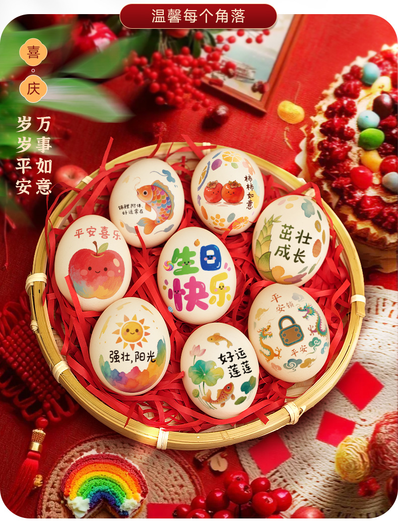 egg sticker-100 days b + bamboo basket + raffia