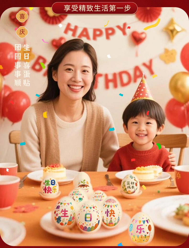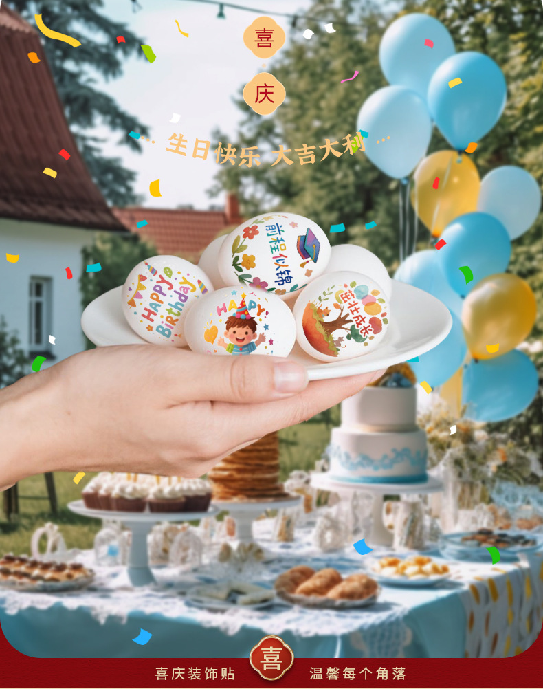 egg stickers-birthday a (16 stickers)