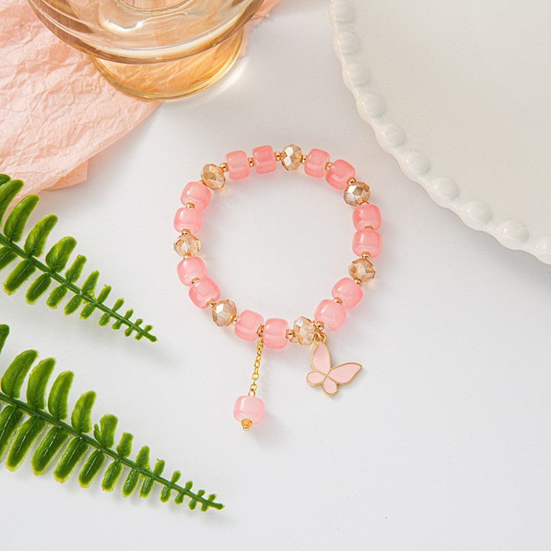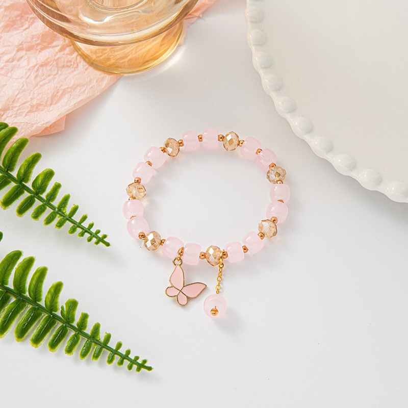 s078-pink barrel beads pink butterfly bracelet# sz616