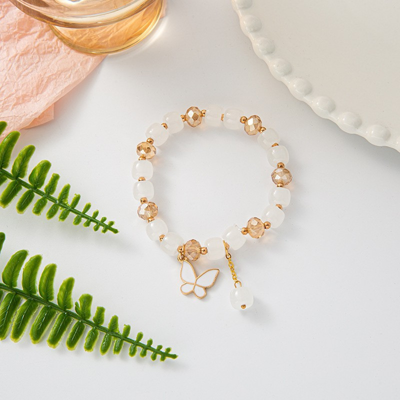 s078-white barrel beads white butterfly bracelet# sz614