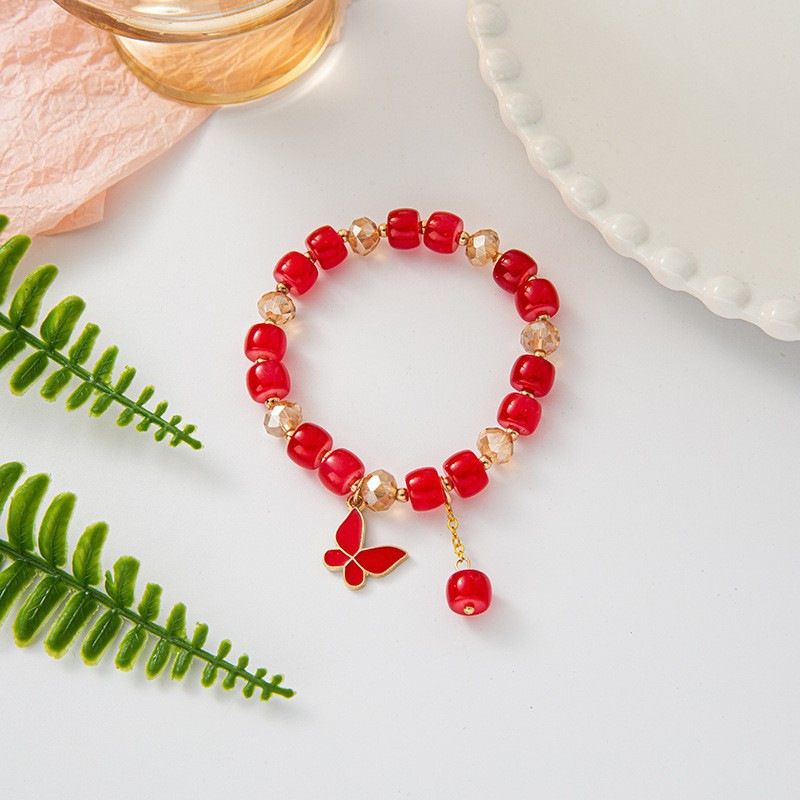 s078-red barrel beads red butterfly bracelet# sz621