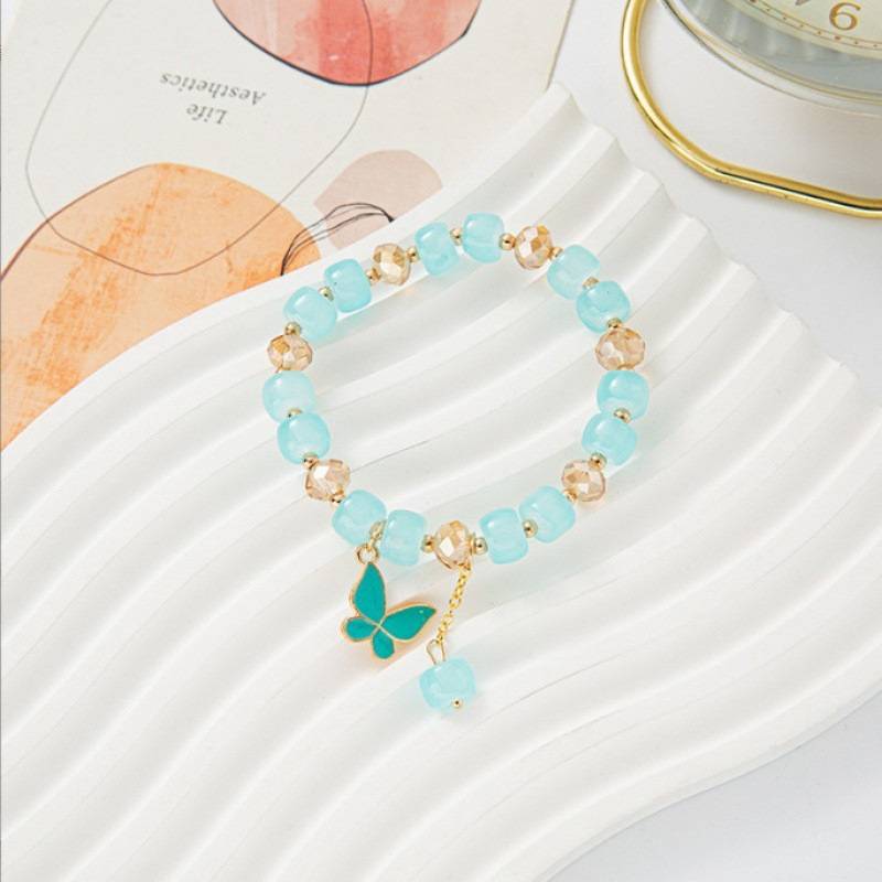 s078-blue barrel beads blue butterfly bracelet# sz618