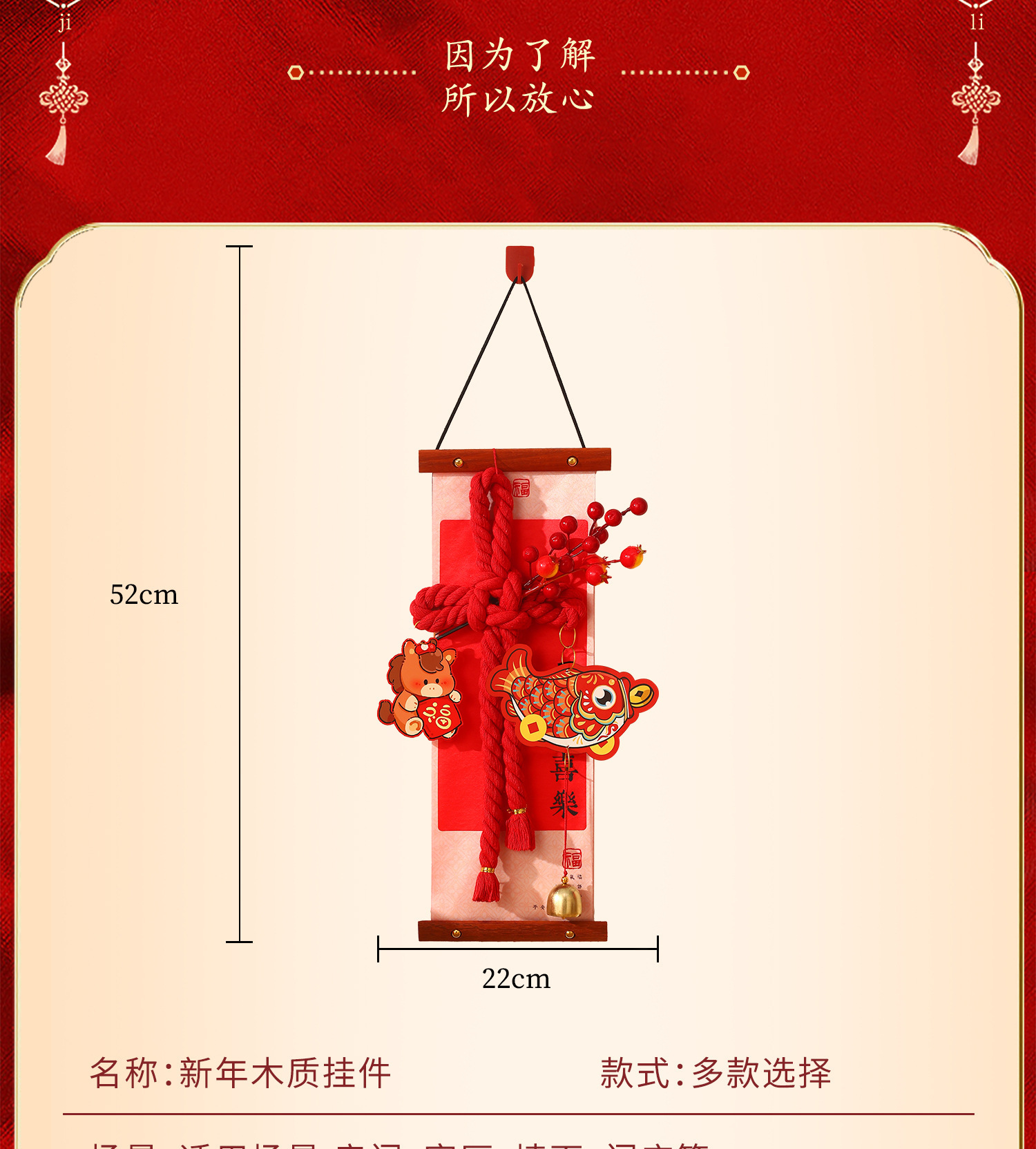 large size wooden pendant-good luck