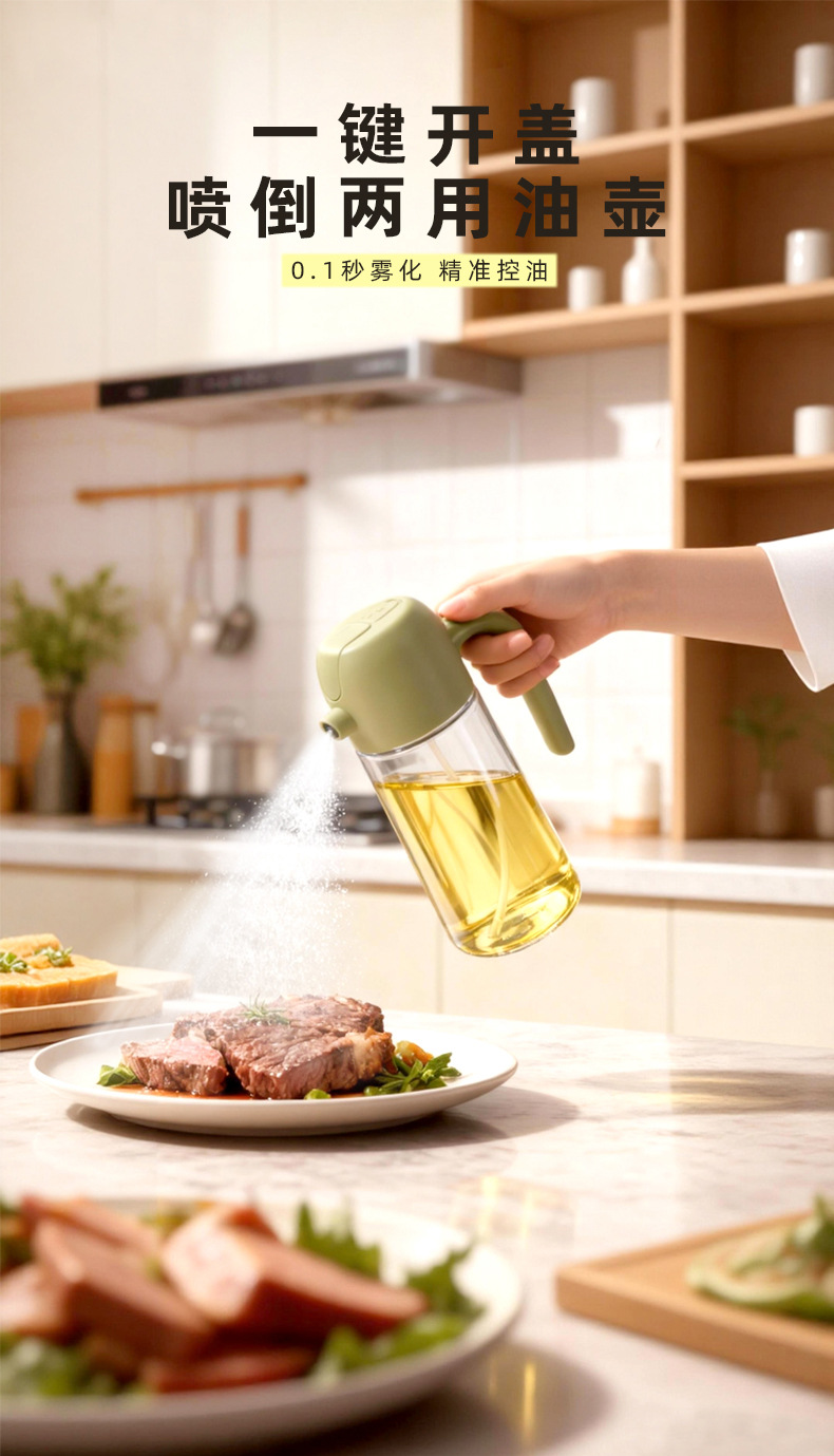 oiler dual-use fuel injector kitchen oil dispenser atomization household glass press oil sprinkling can integrated oil bottle