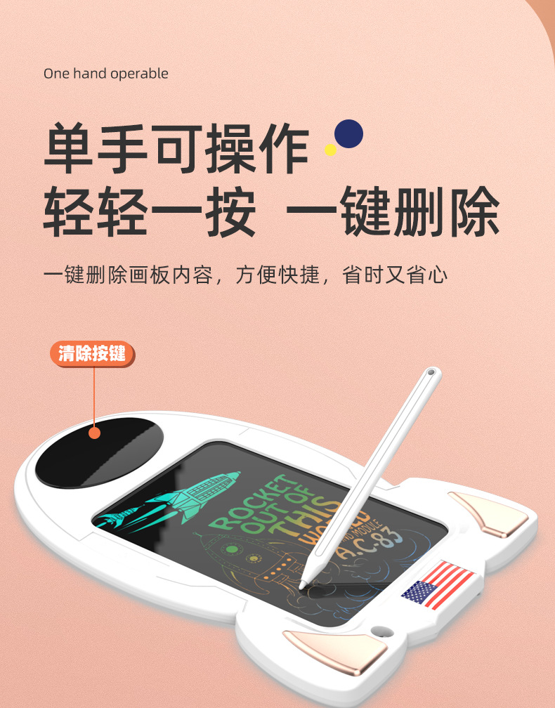 6.8-rocket model [bright color screen + rose gold] children's drawing board