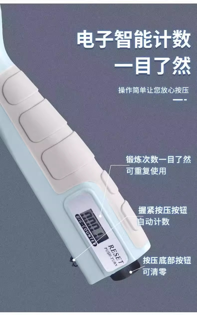 | light blue/electronic count/9999 maximum count [5-100kg adjustment] rubber coated non-slip handle | CN¥ 6.3 | 10000 piece available |