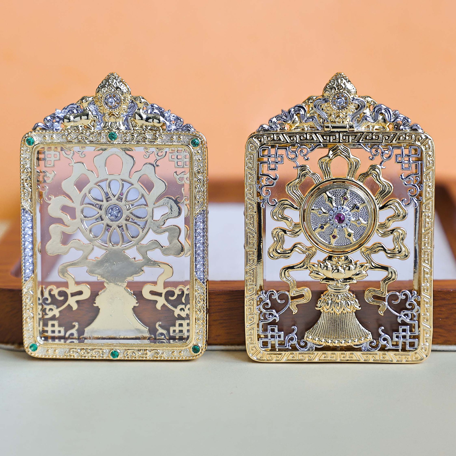 copper-plated gold high-end thangka shell [colorful crystals transparent]]
