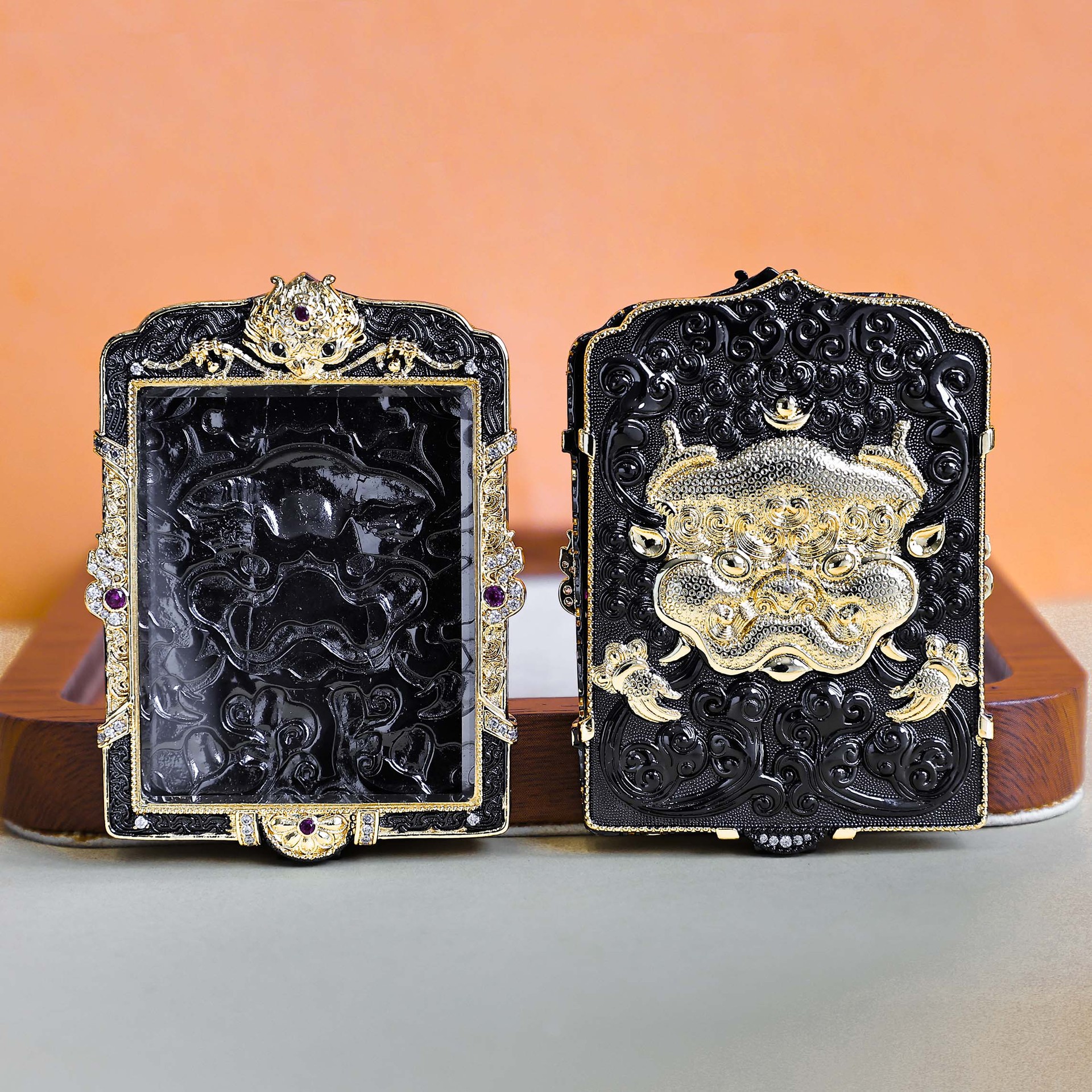 copper-plated gold high-end thangka shell [gold black transparent]]