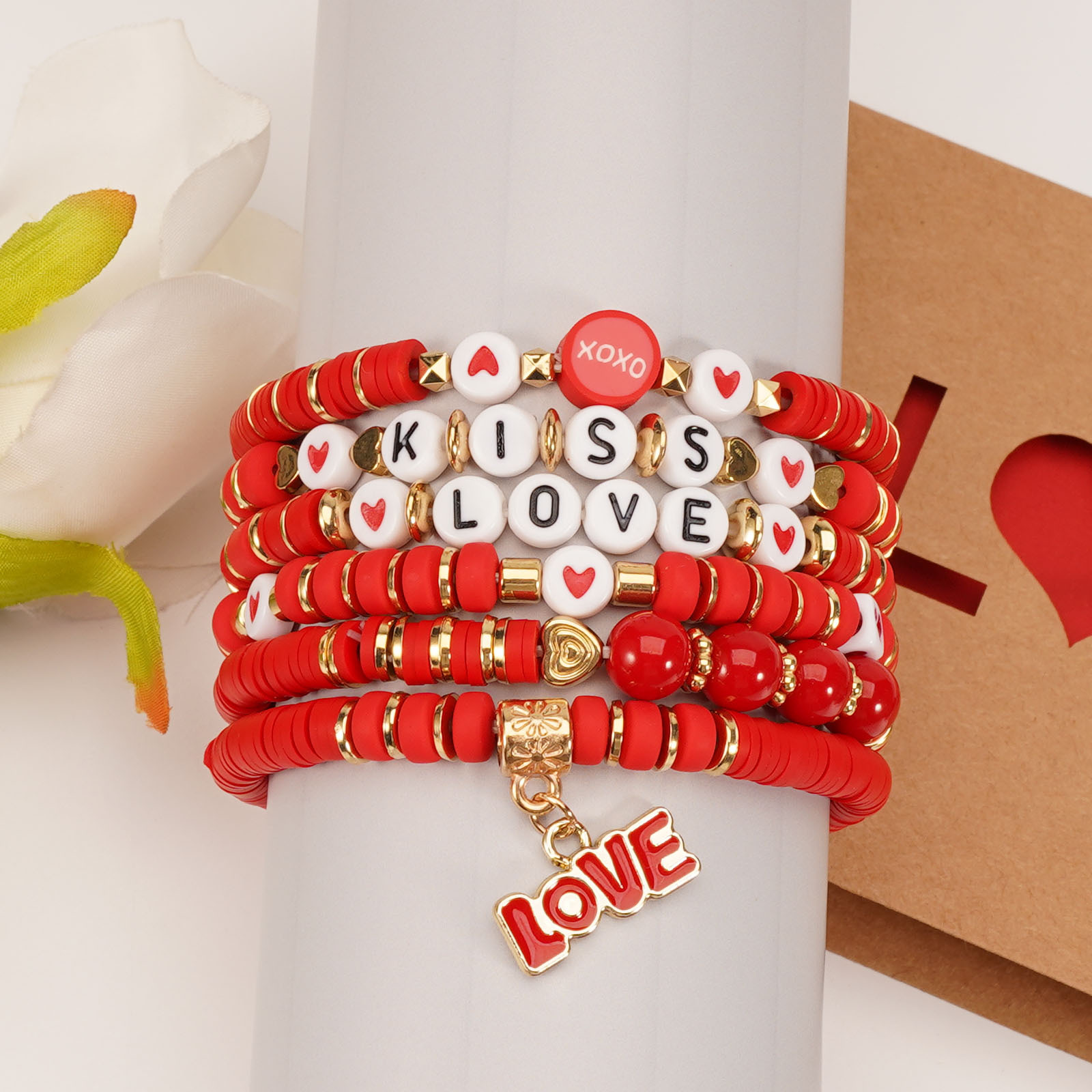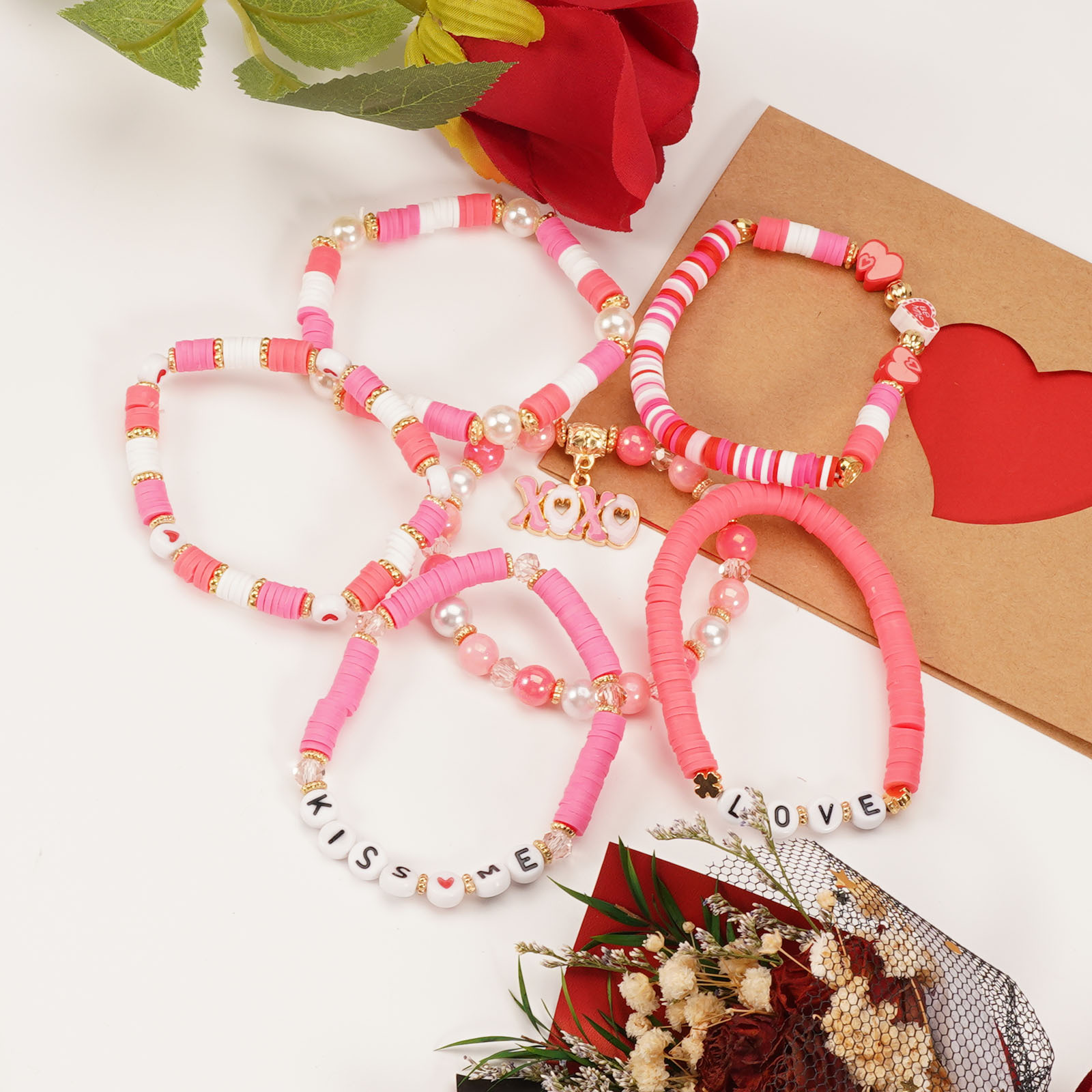 Valentine's Day Bracelet with Heart-shaped LOVE Rose Pendant, Soft Clay, Artificial Crystal Beads, and Love Bracelet for the Qixi Festival
