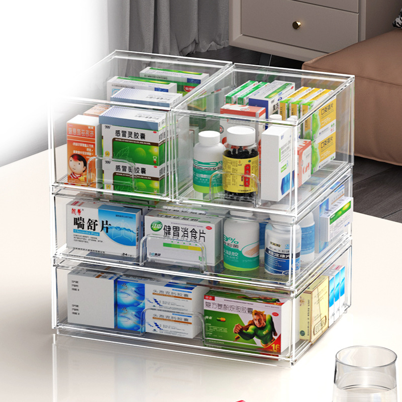 transparent medicine box storage box drawer medicine storage cabinet household storage rack medicine box multi-layer family pack