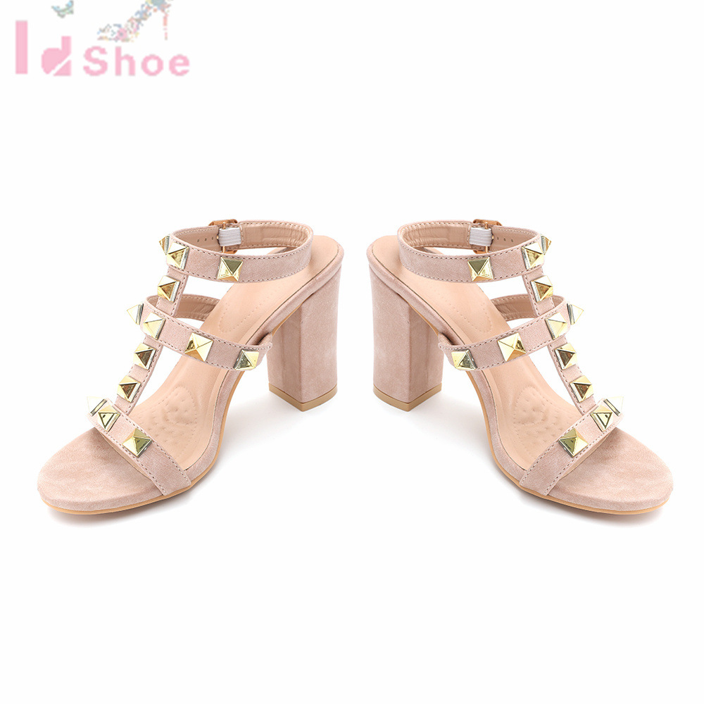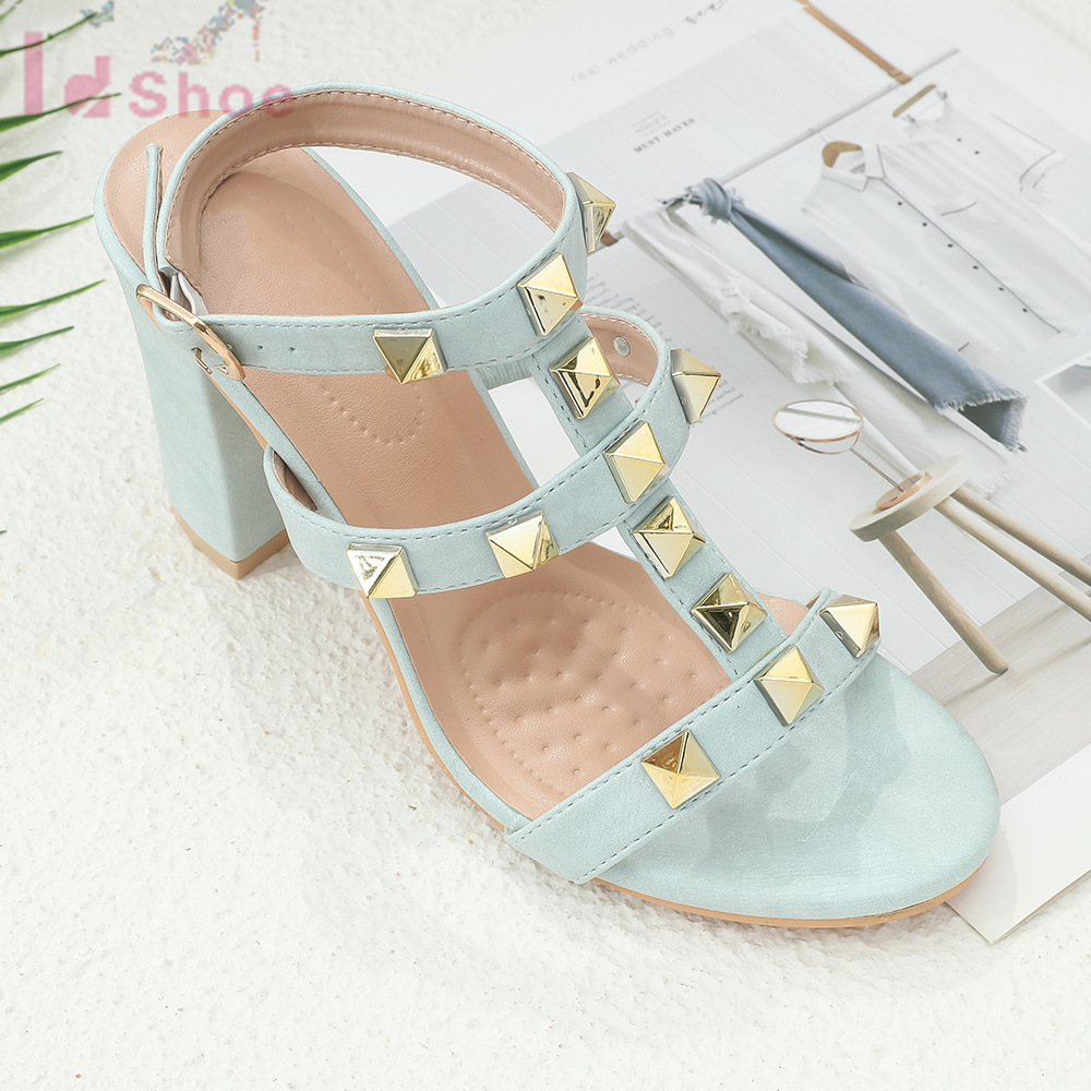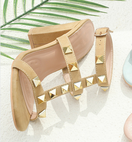 milk tea color solid color rivet sandals soft bottom chunky heel student party dating outing lightweight