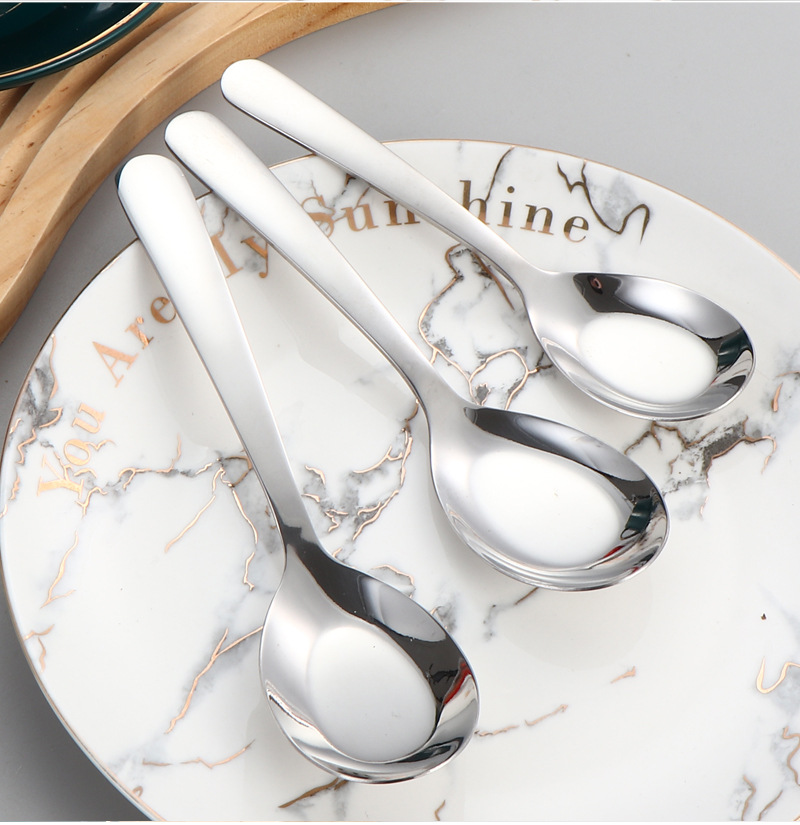 stainless steel thickened flat spoon eating spoon household spoon soup spoon dessert spoon good-looking chinese spoon tableware